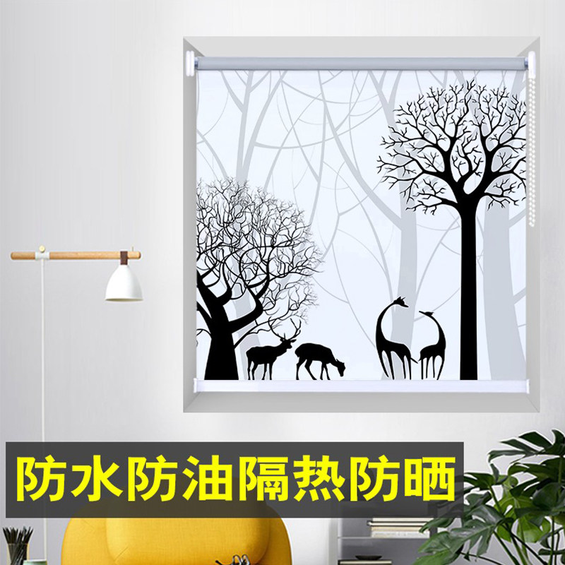简易窗帘北欧免打孔安装 卫生间厨房窗户遮光防水防晒拉帘家用升降