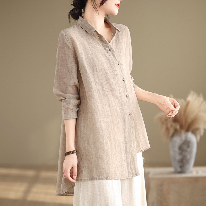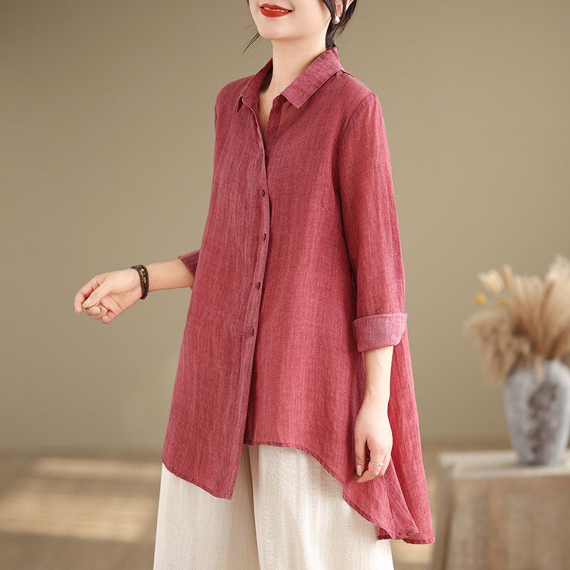 两件套 复古休闲亚麻不规则上衣阔腿裤 中年妈妈棉麻套装 女春夏新款