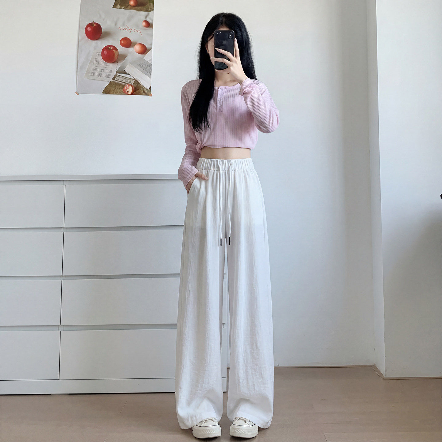 女白色冰丝弯刀裤 速干山本运动裤 夏季 直筒宽松阔腿裤 薄款 2026新款