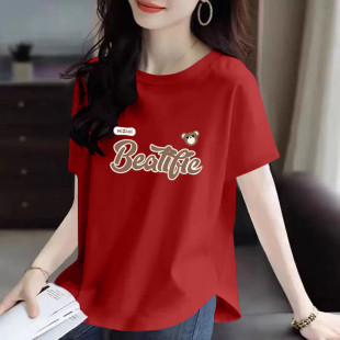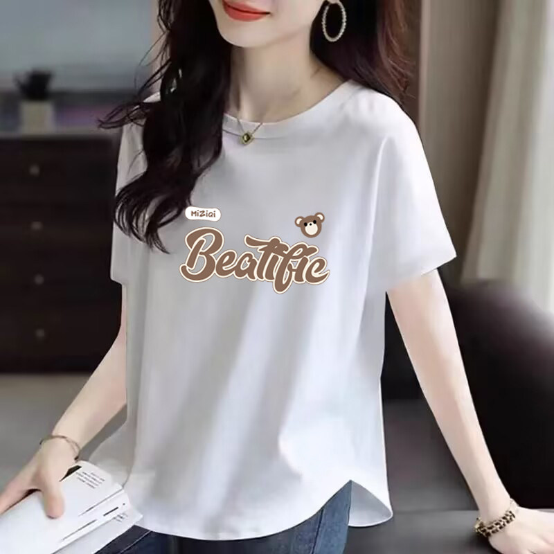 女装 下摆弧形短袖 纯棉100%大码 新款 t恤 印花上衣夏季 品牌折扣正品