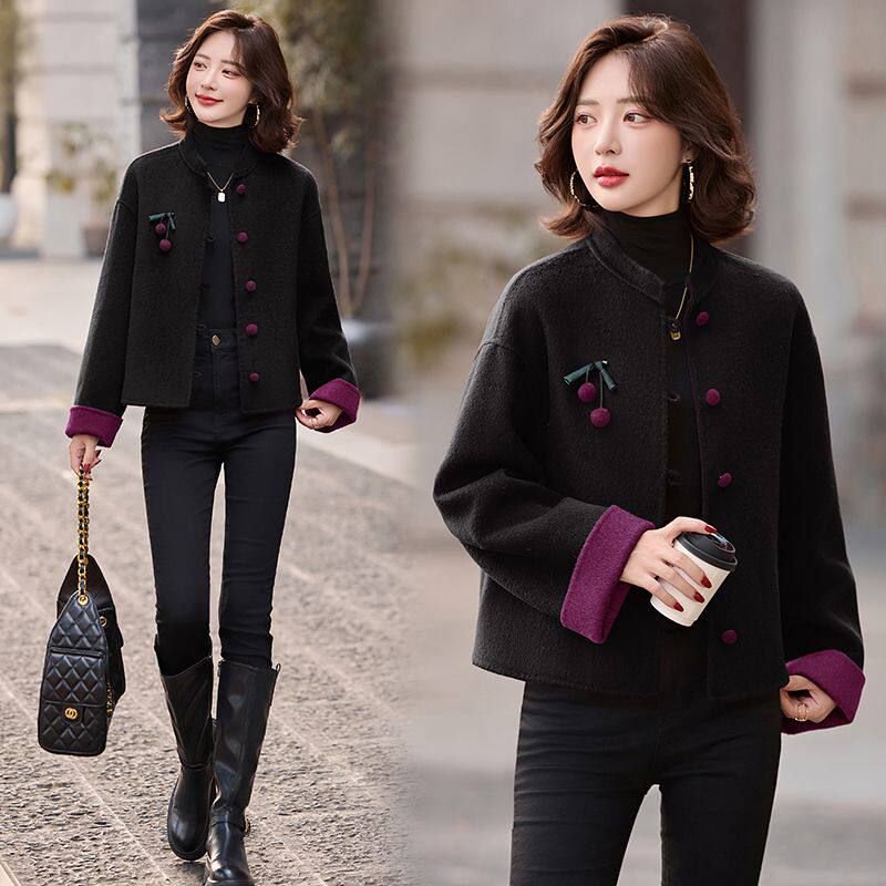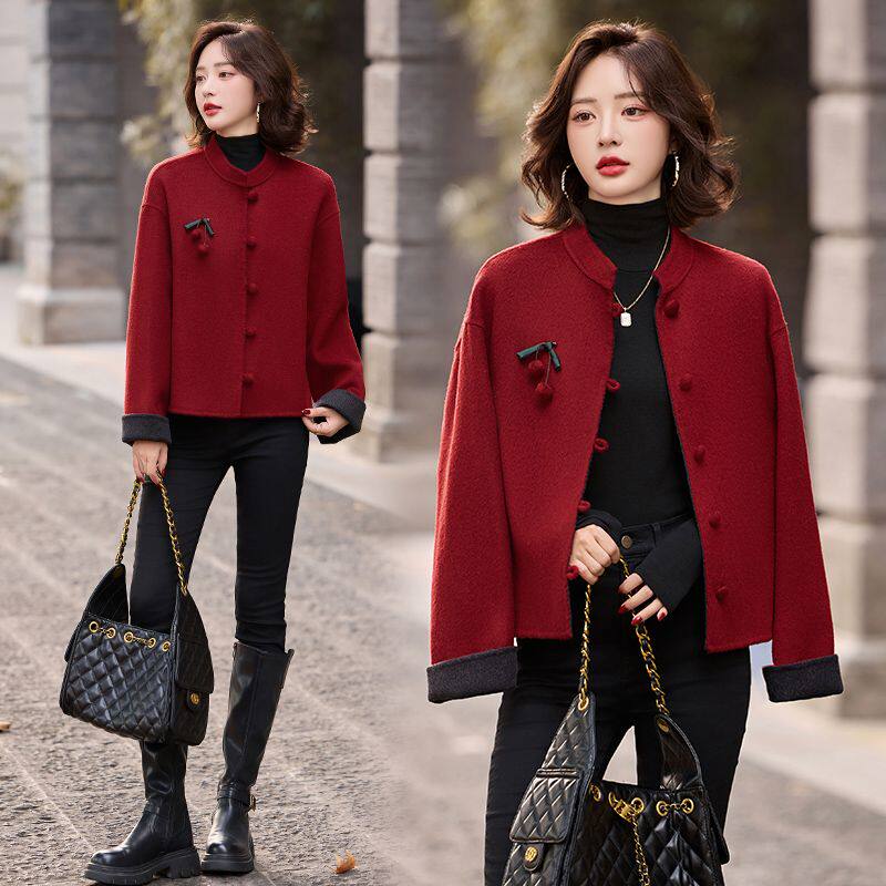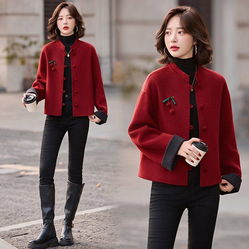 毛呢外套女绵羊毛双面呢大衣 立领短款 2025新款 新中式
