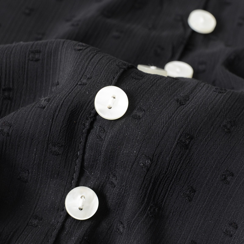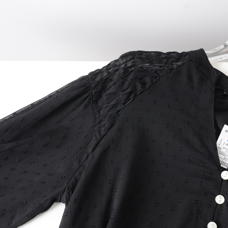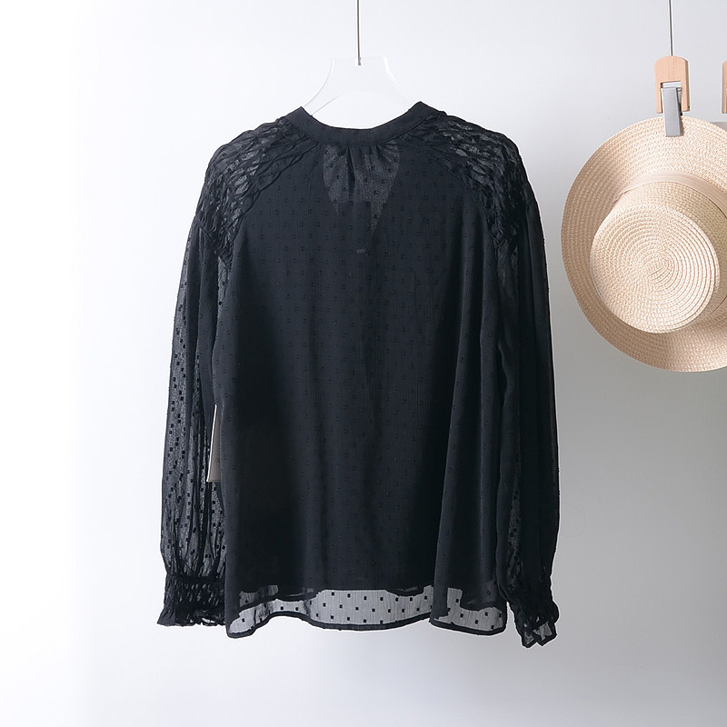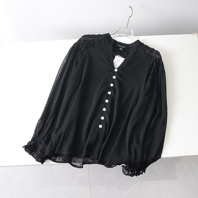 衬衫 美国单 女士复古优雅显瘦植绒波点雪纺V领长袖 新款 女 春季