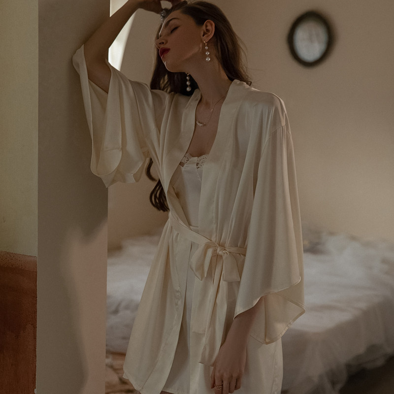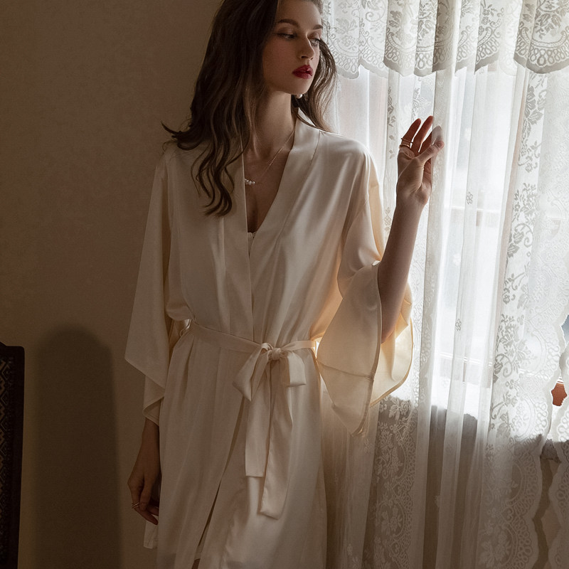 雅小姐性感睡袍女秋冬浴袍晨袍女新娘伴娘浴衣薄款 丝绸睡衣家居服