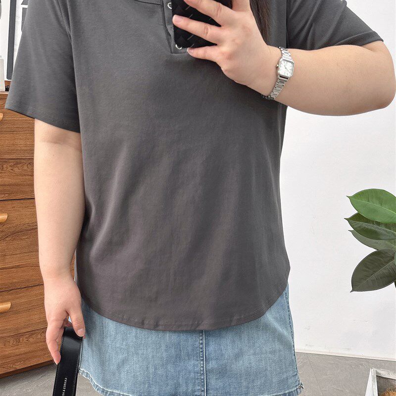 女装 减龄显瘦上衣胖mm设计感正肩短袖 2024年夏装 短款 t恤 新款 大码