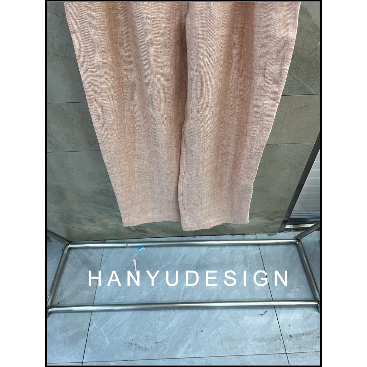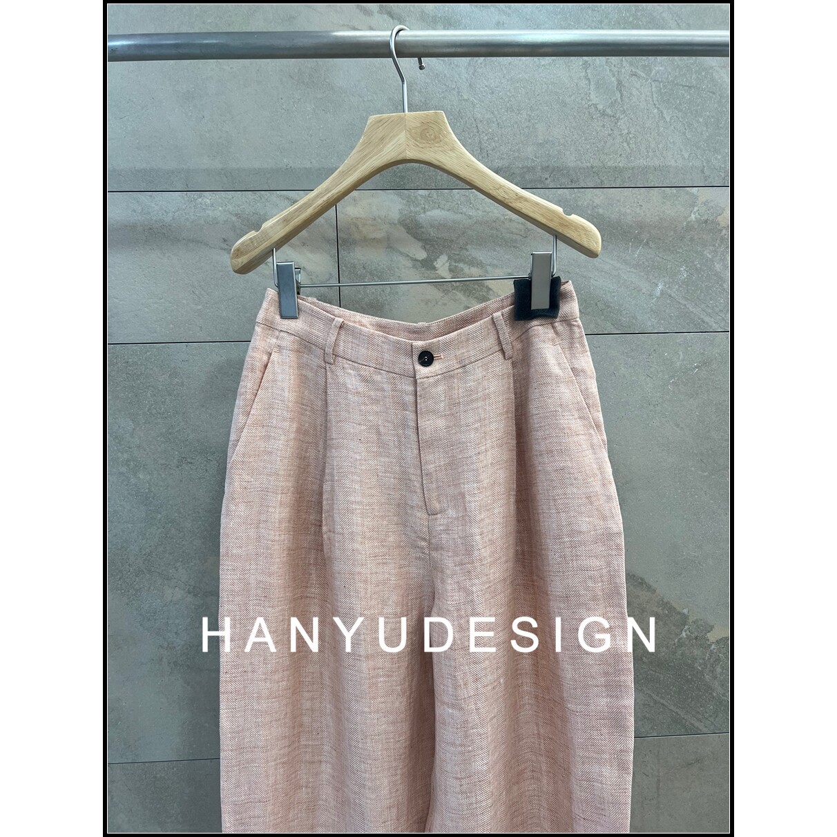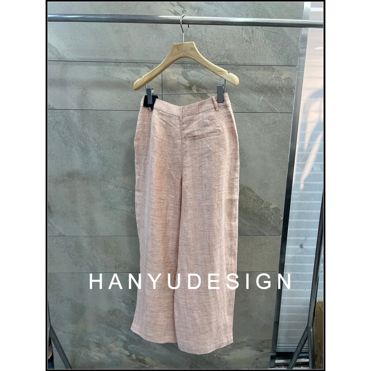 100%亚麻粉色百搭高腰阔腿裤 26早春新款 女 韩钰DESIGN