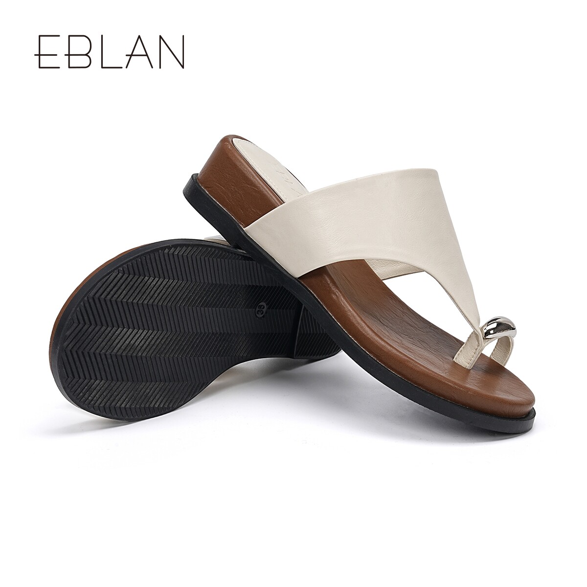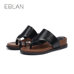 坡跟凉拖鞋 EBLAN 新款 套趾方头厚底人字拖女外穿2026夏季 伊伴法式
