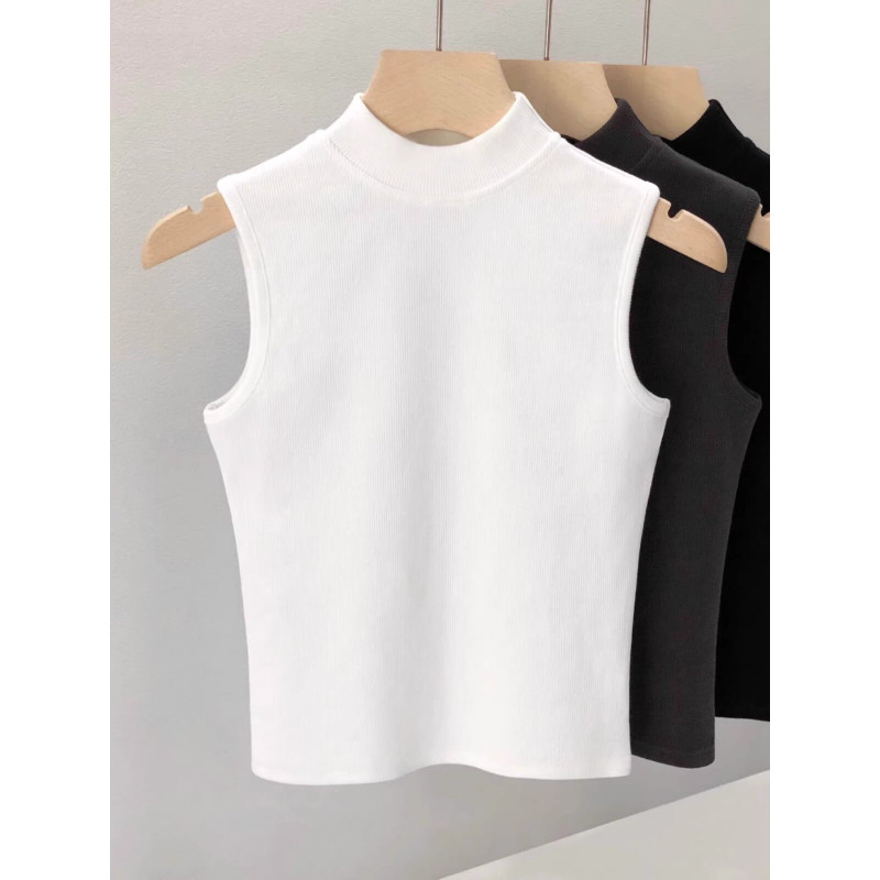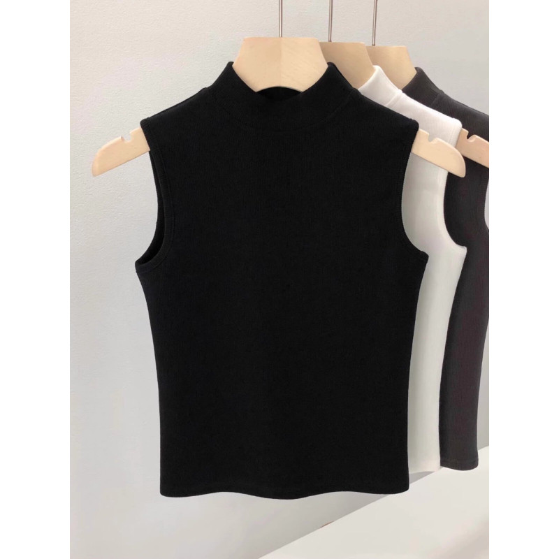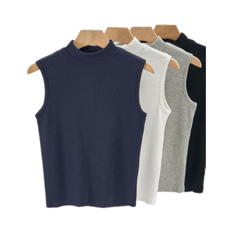 藏青色立领无袖 打底衫 背心内搭半高领中领修身 无袖 短款 爆炸好看