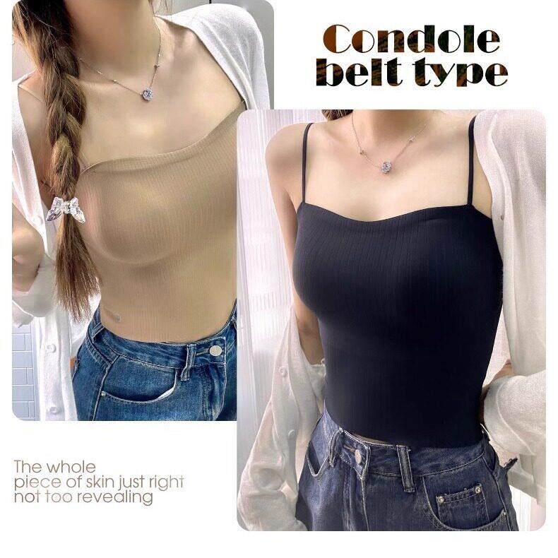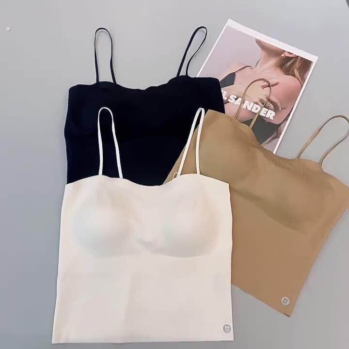 背心 纯欲辣妹有胸垫细肩带无痕吊带女夏冰丝瑜伽短款 自留款 推荐