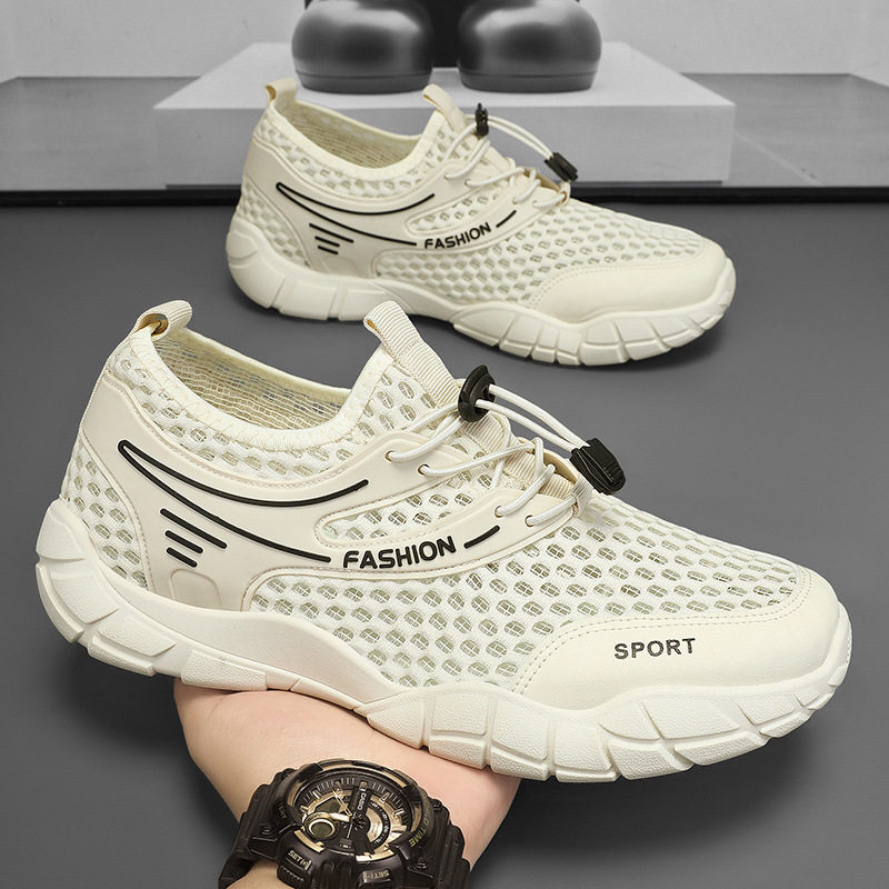 夏季 休闲洞洞鞋 新款 子男潮流百搭厚底飞织运动鞋 透气镂空网鞋 男鞋