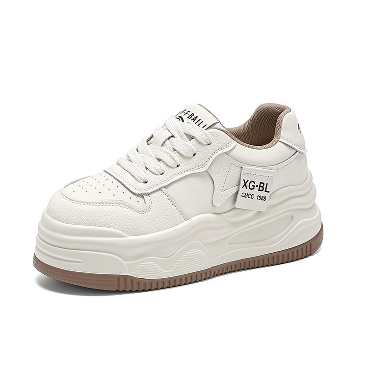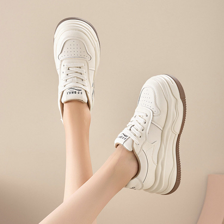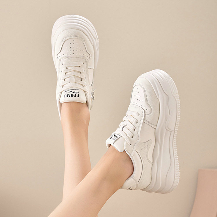 新款 女2026春季 百搭显脚小 7cm增高小个子厚底真皮小白鞋 香港潮鞋