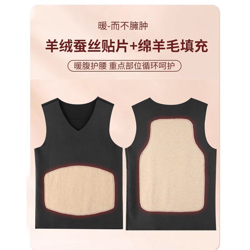 多彩羚德绒蚕丝100羊毛贴片背心男款 秋冬暖腹护腰柔软内搭背心