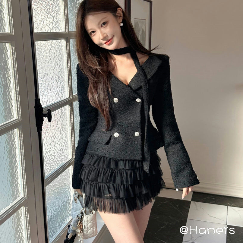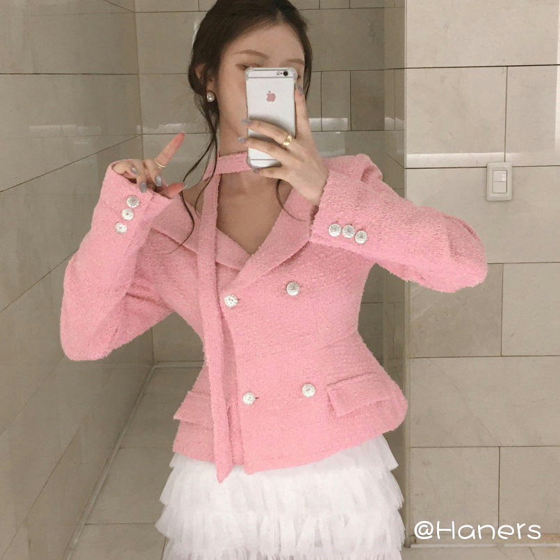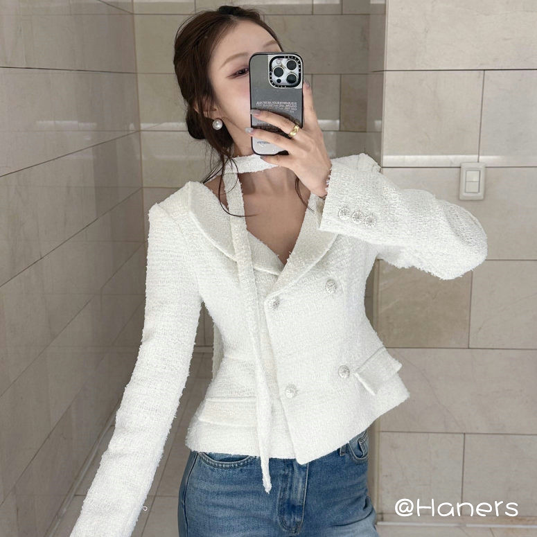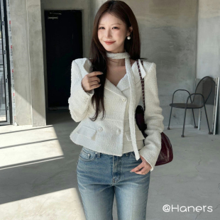 含脖带粗花呢夹克 修身 Haners家韩国代购 文艺女青年2026年春夏新品
