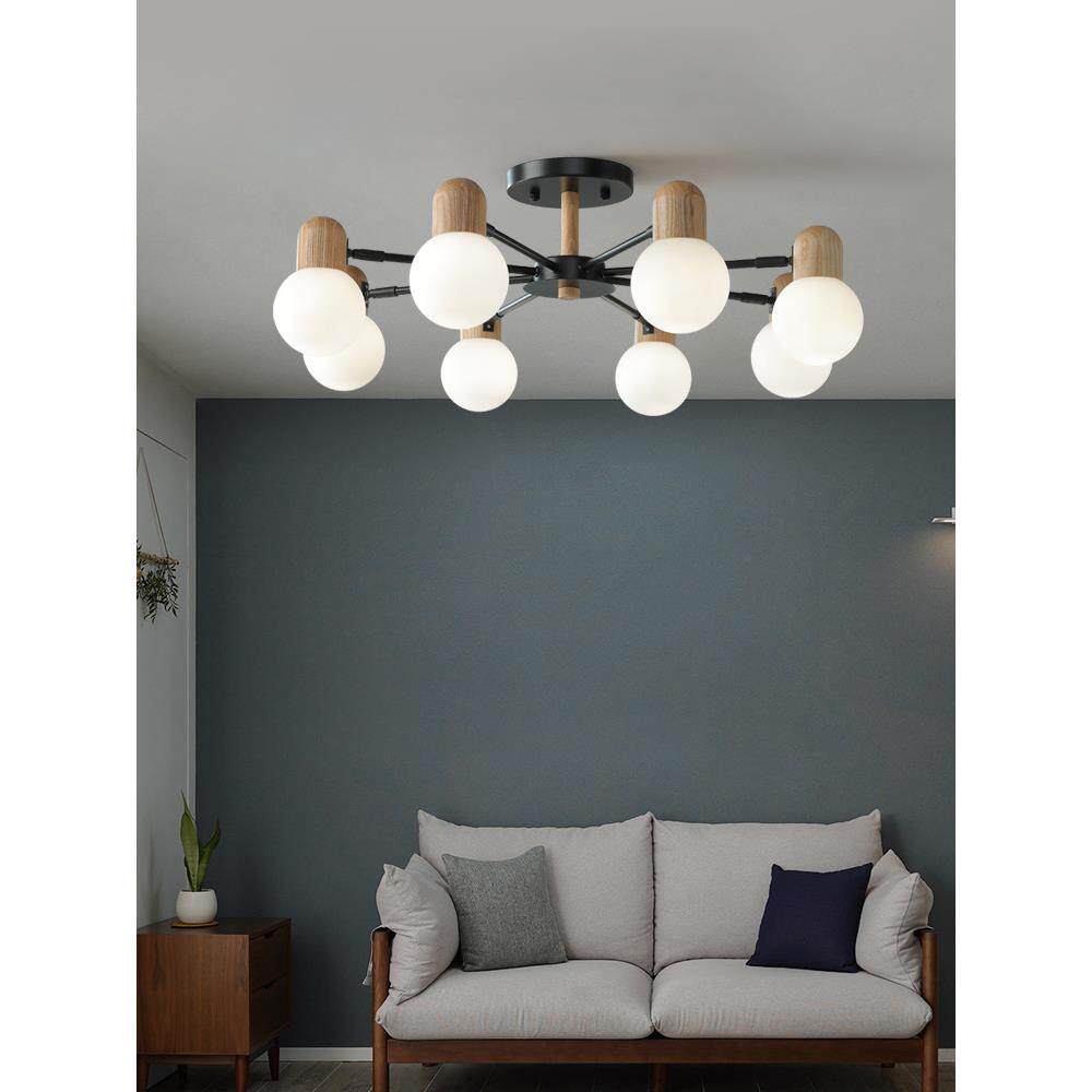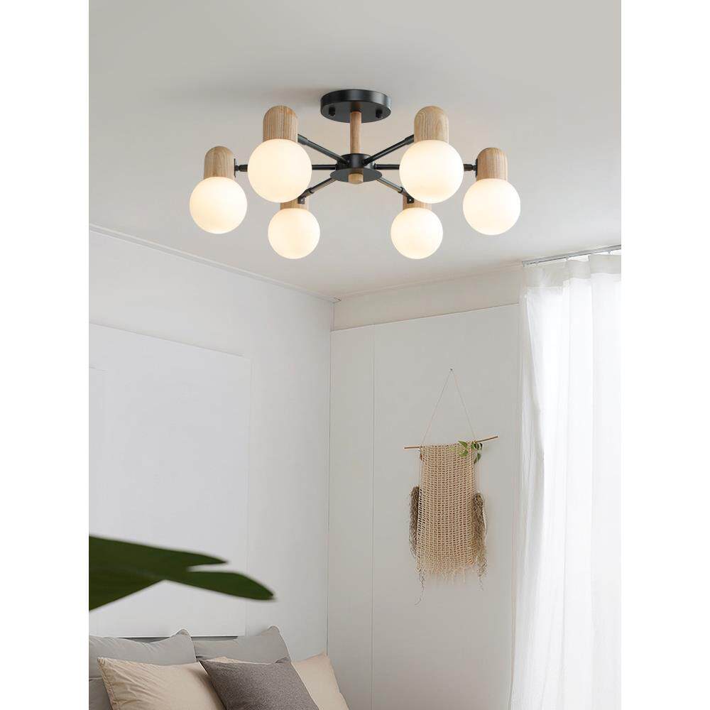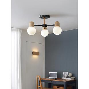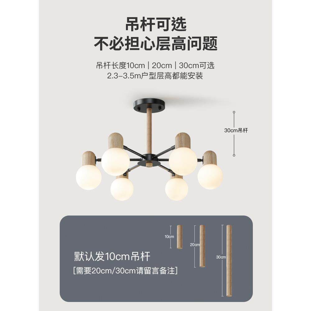 客厅吊灯2024年新款 北欧简约大气原木风玻璃现代卧室房间餐厅灯具