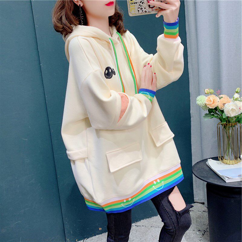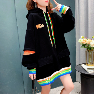 宽松加绒大码 韩版 连帽上衣 卫衣女2023春秋新款 网红设计感洋气薄款
