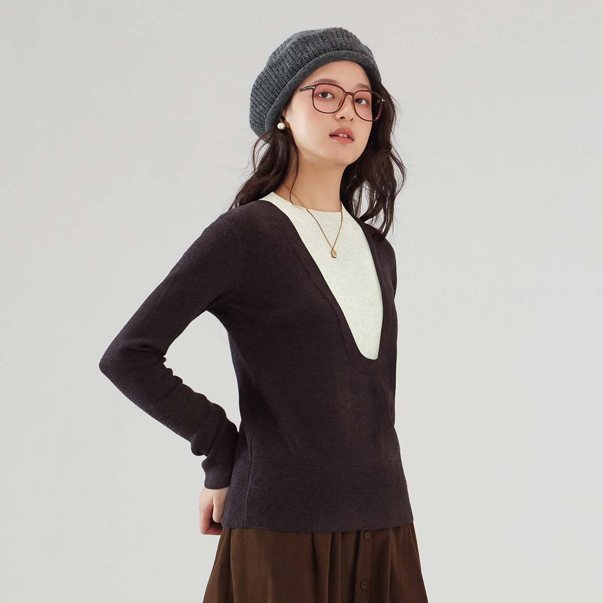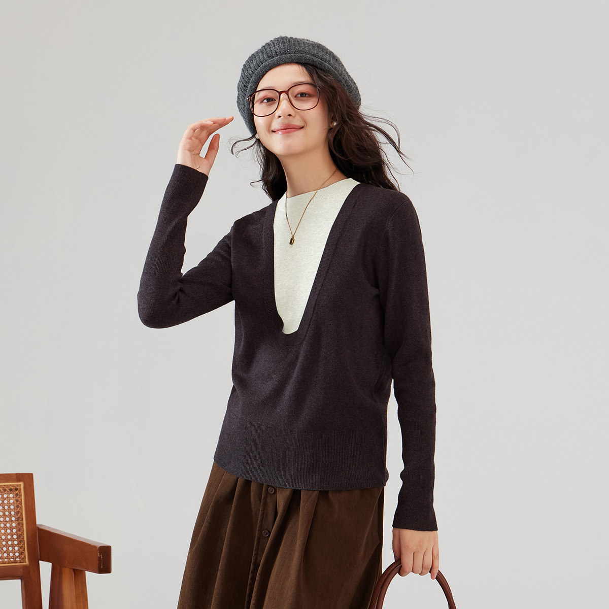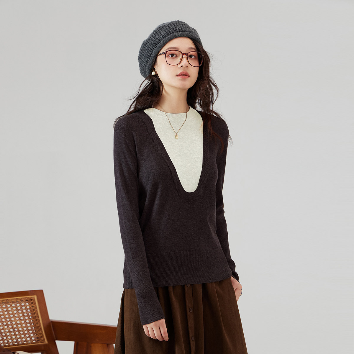 26年春内搭假两件毛衣针织衫 女高级感外穿百搭显瘦洋气打底上衣