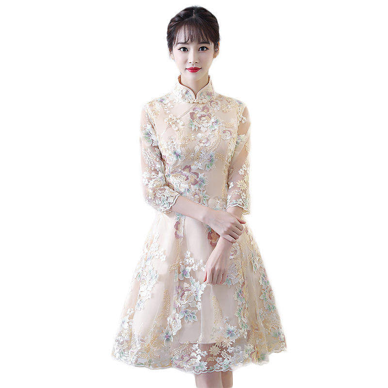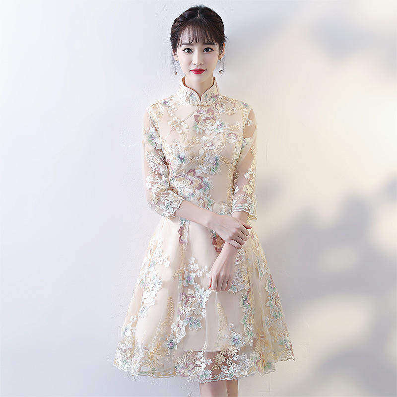 日常短款 改良版 气质显瘦时尚 春夏季 少女 旗袍连衣裙小香风新款