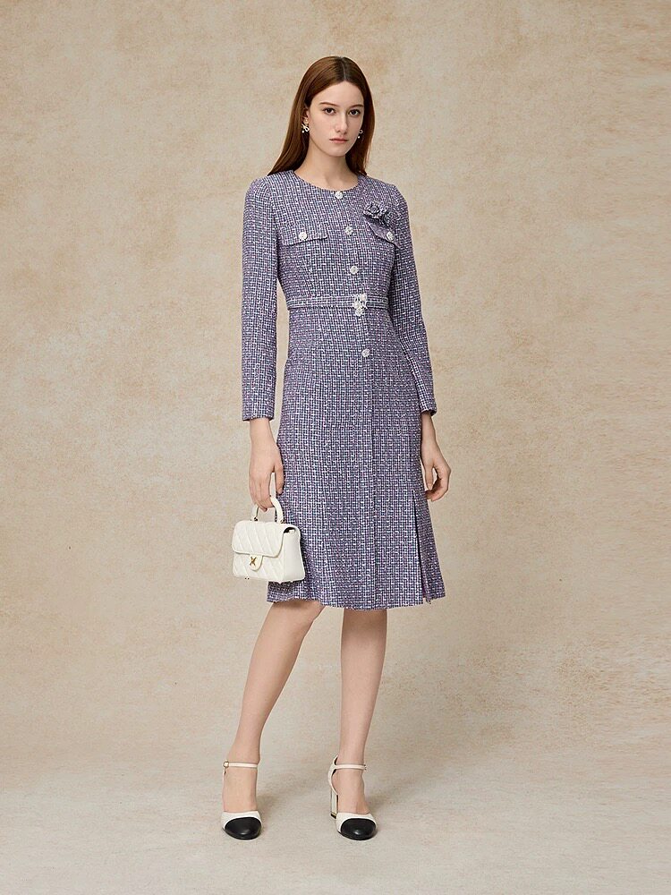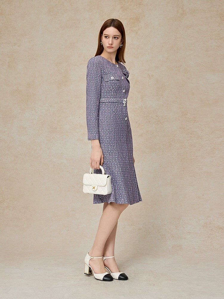 莫佐 2026千金名媛风小香连衣裙轻奢花纱粉紫色鱼尾裙 MOJO夏新品