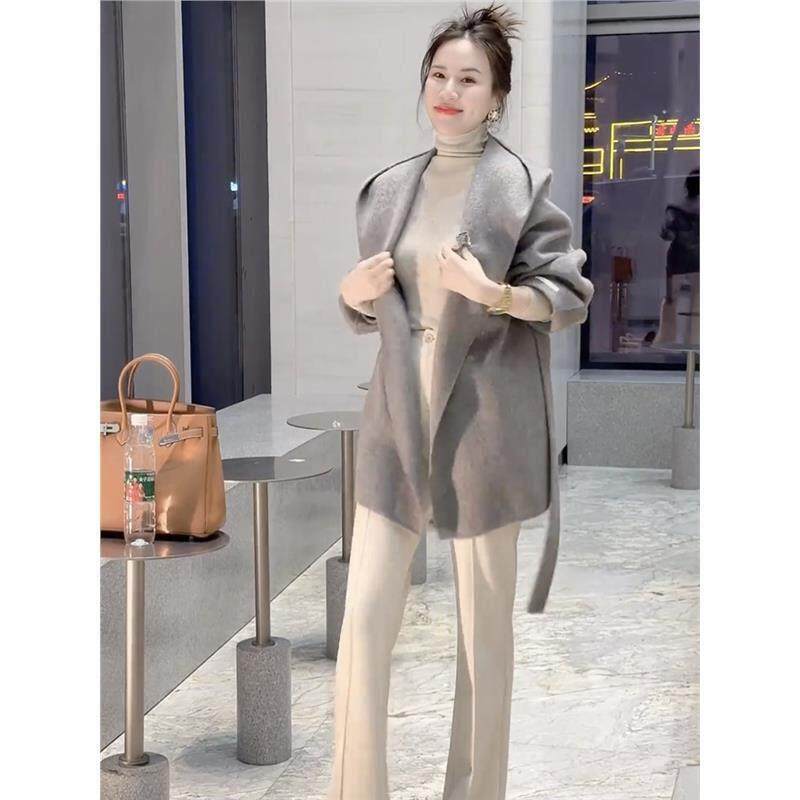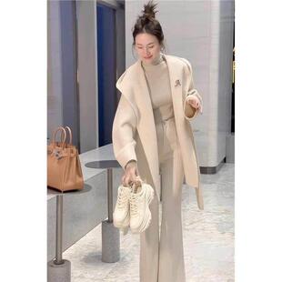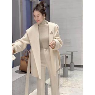 香港小香风连帽呢子大衣女外套秋冬高级感中长款 上衣潮 超好看时尚