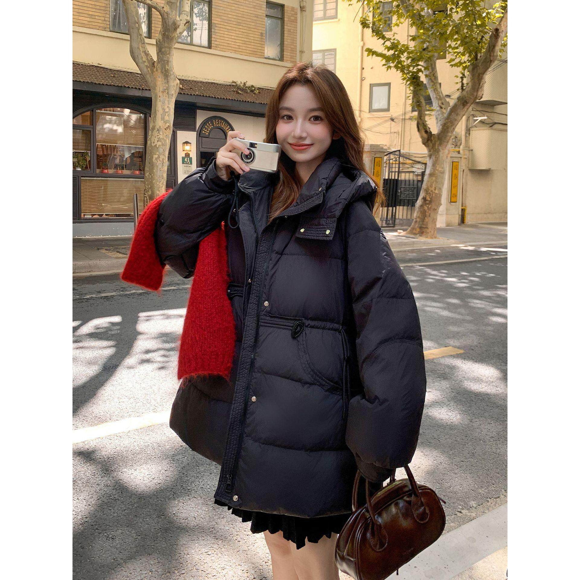 加肥加大羽绒服女宽松连帽200斤冬装 连帽鸭绒外套 加肥加大300韩版