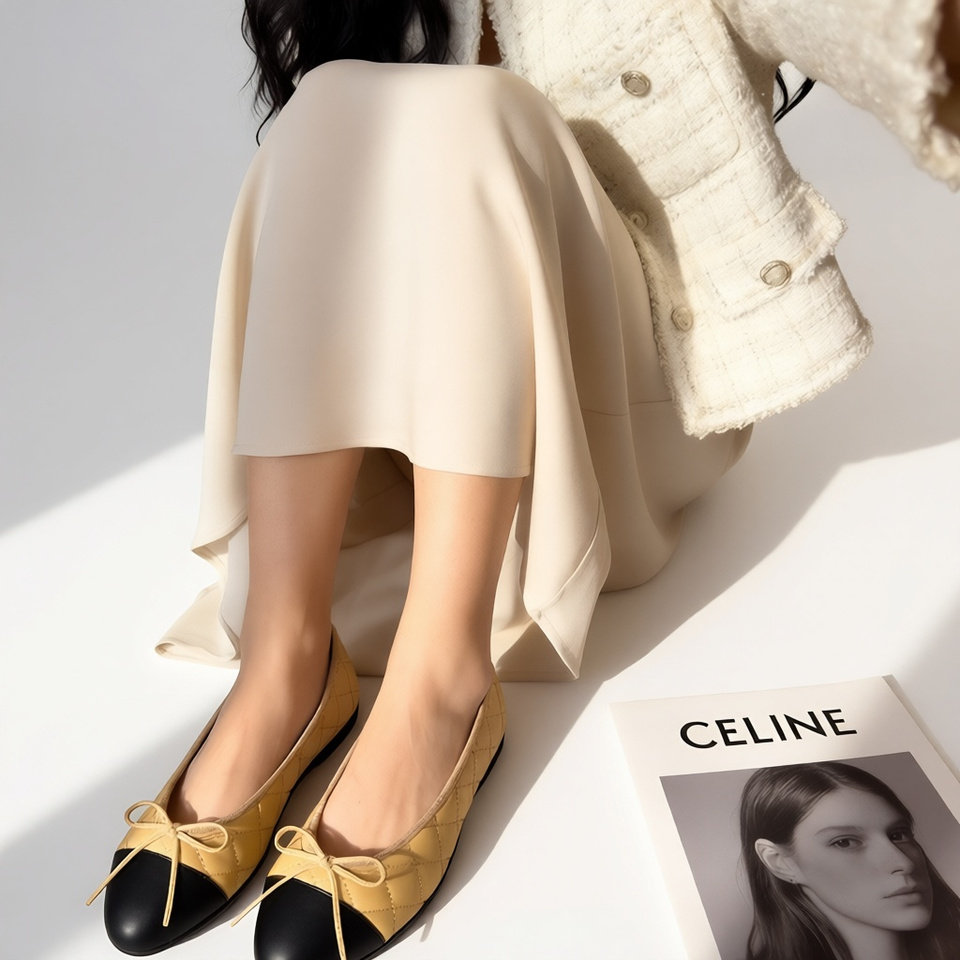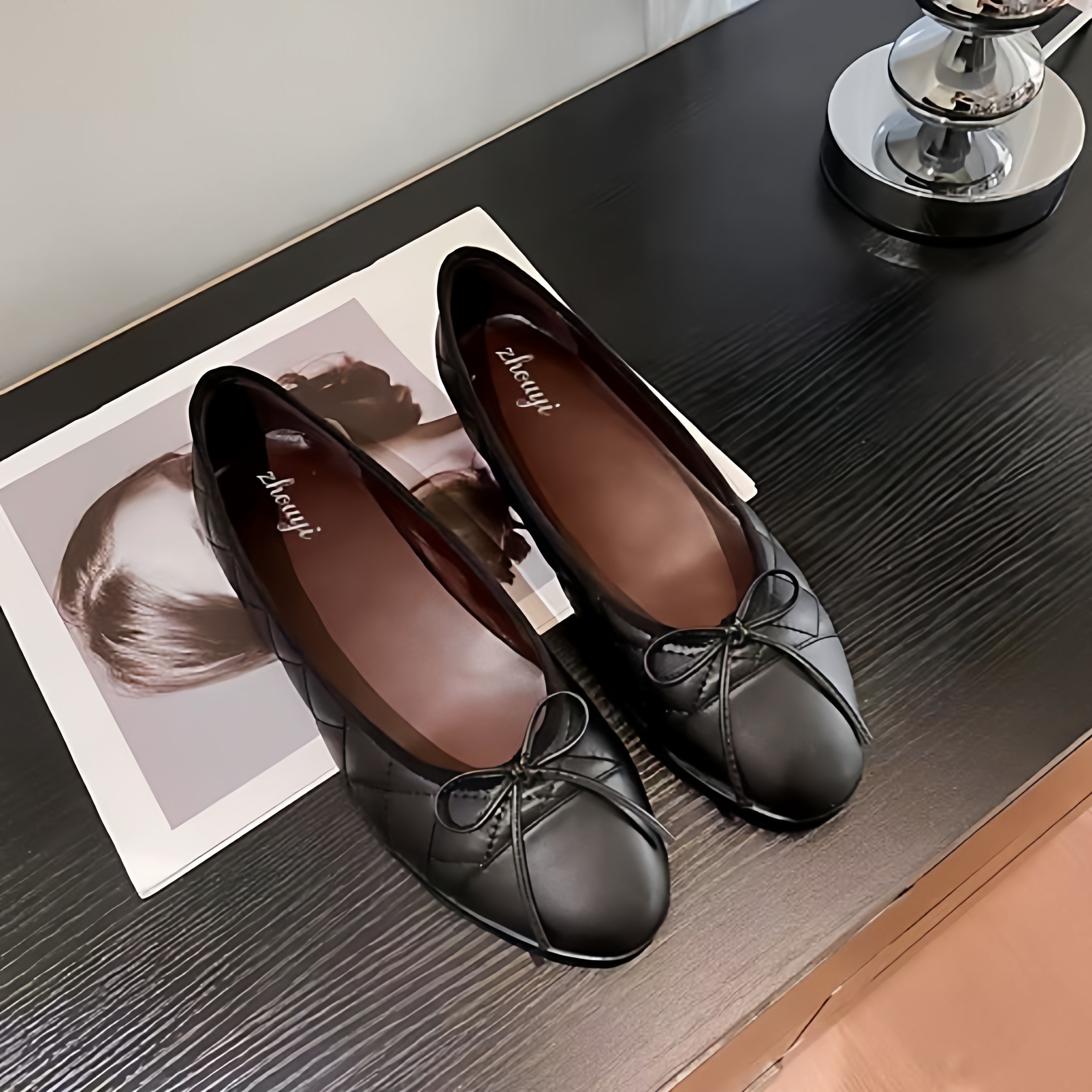 2026小香风拼色方头平底鞋 女温柔风蝴蝶结浅口通勤百搭奶奶单鞋