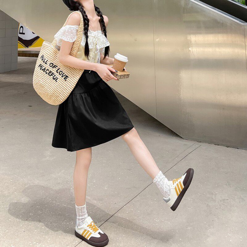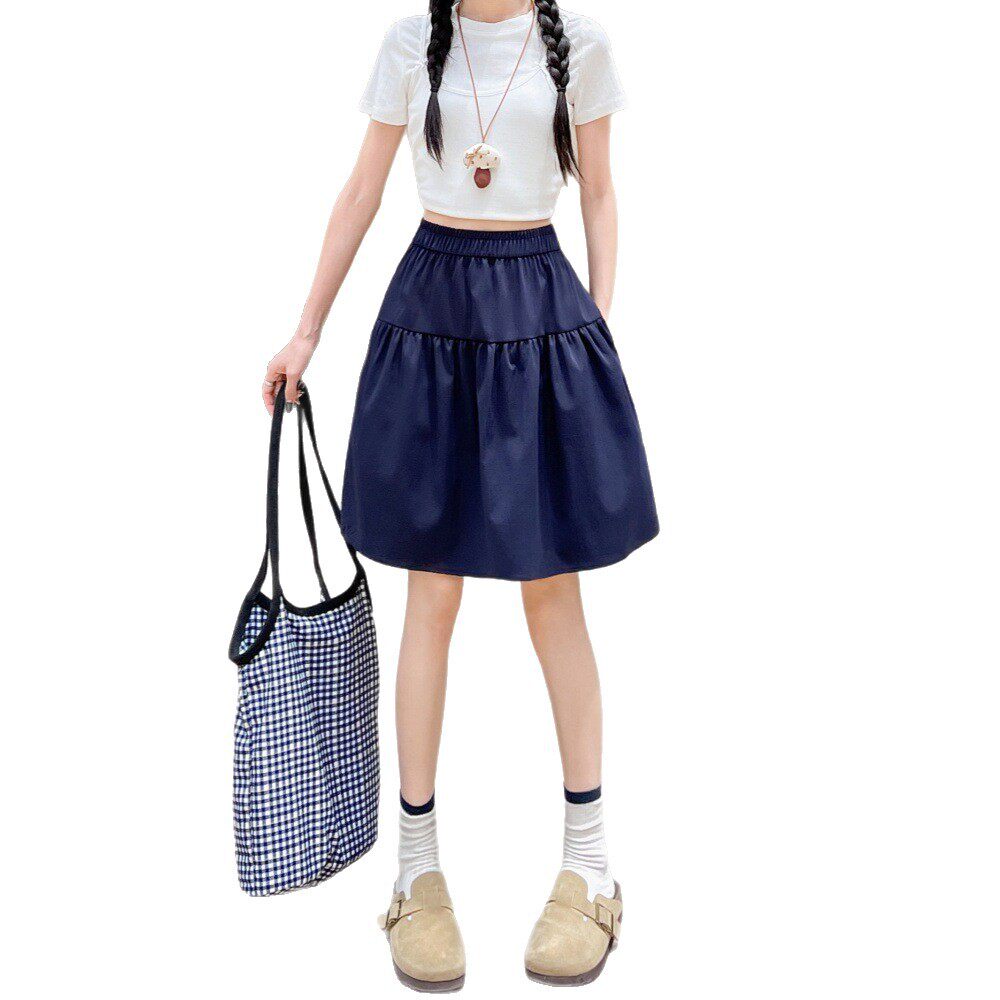 日系学院风中短裙女春夏季 高腰a字伞裙宽松休闲半身裙子 2026新款