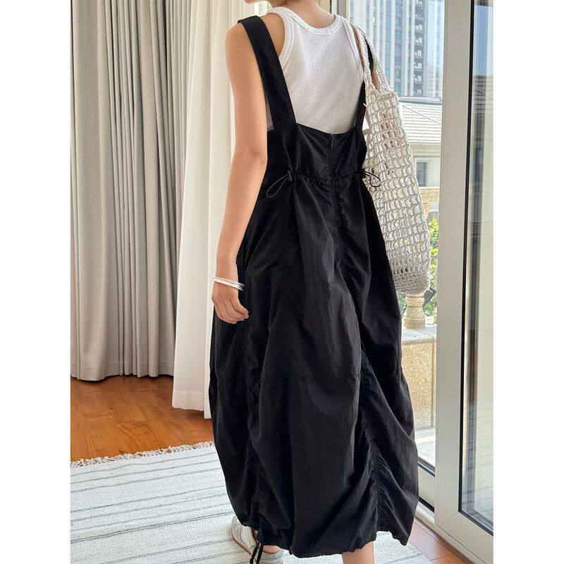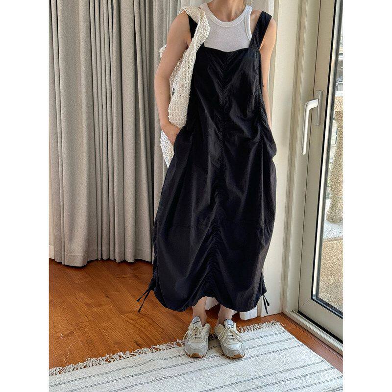 舒适清新女抽绳休闲连衣裙褶皱 工装 透气休闲新款 背带裙夏季