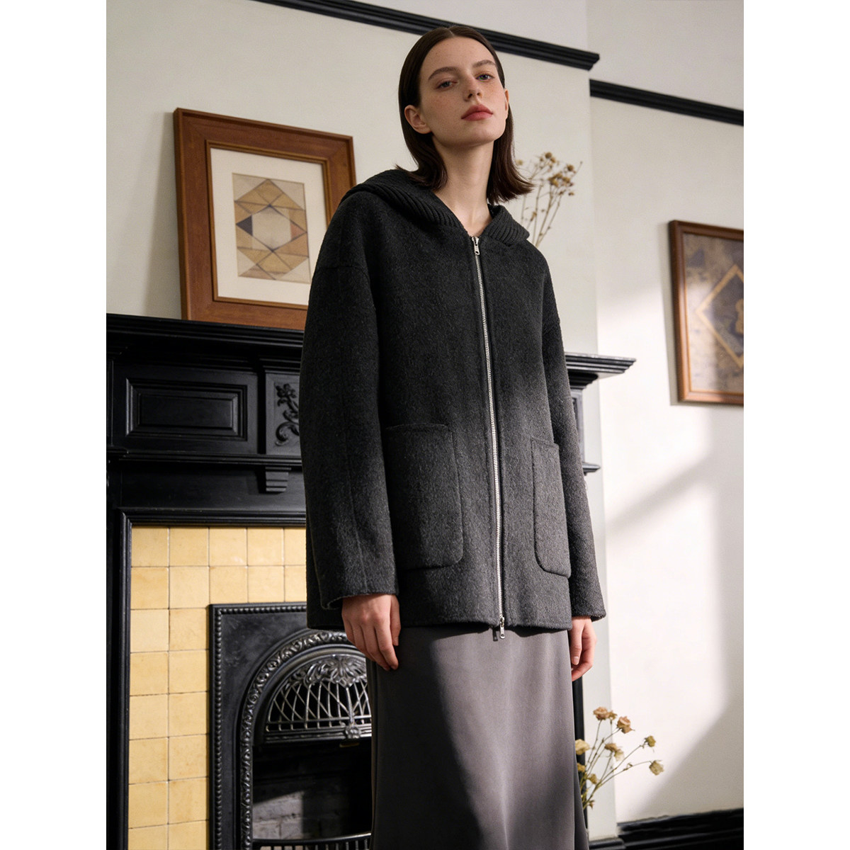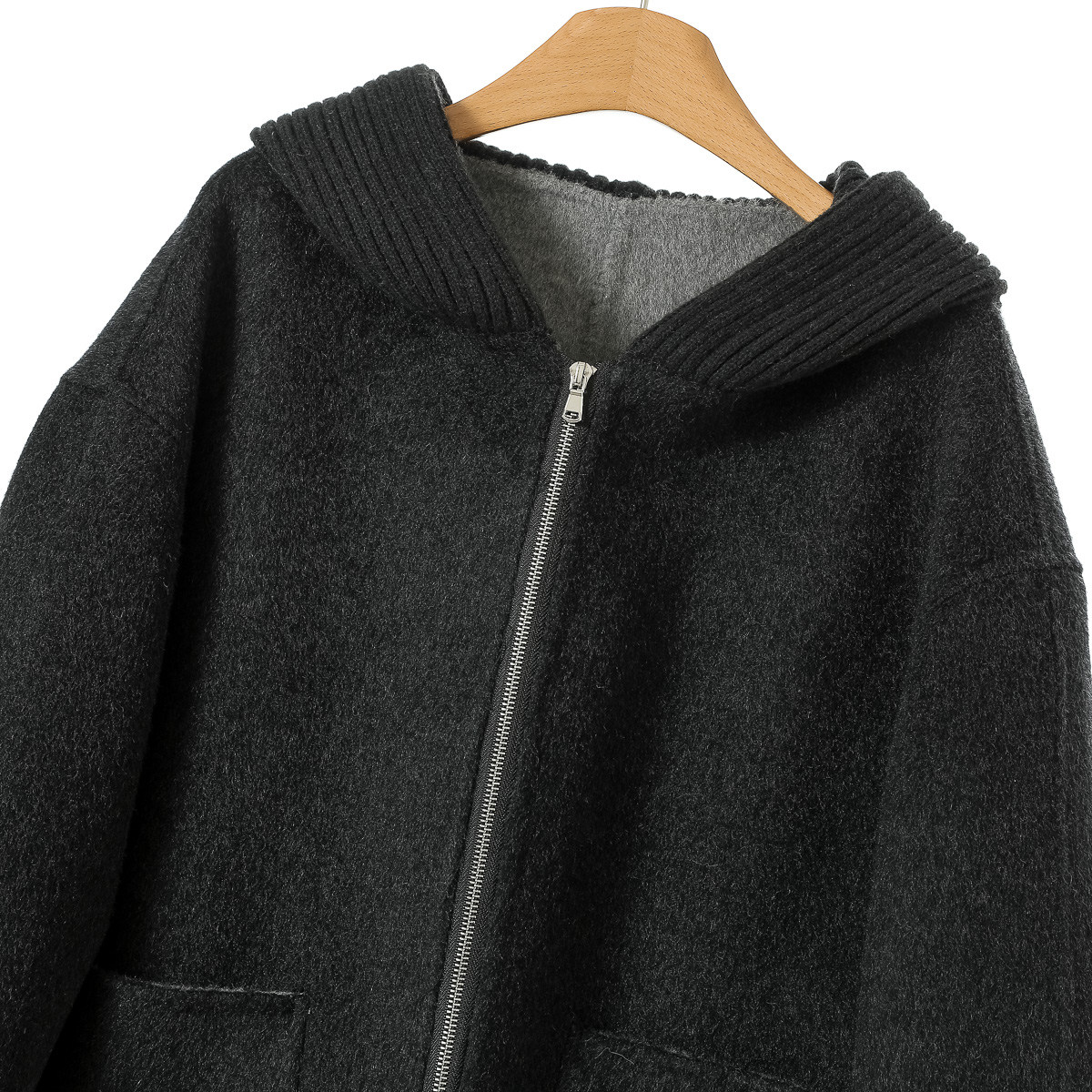 冬装 南油 针织连帽拉链双面呢长毛大衣502 羊绒 含桑蚕丝