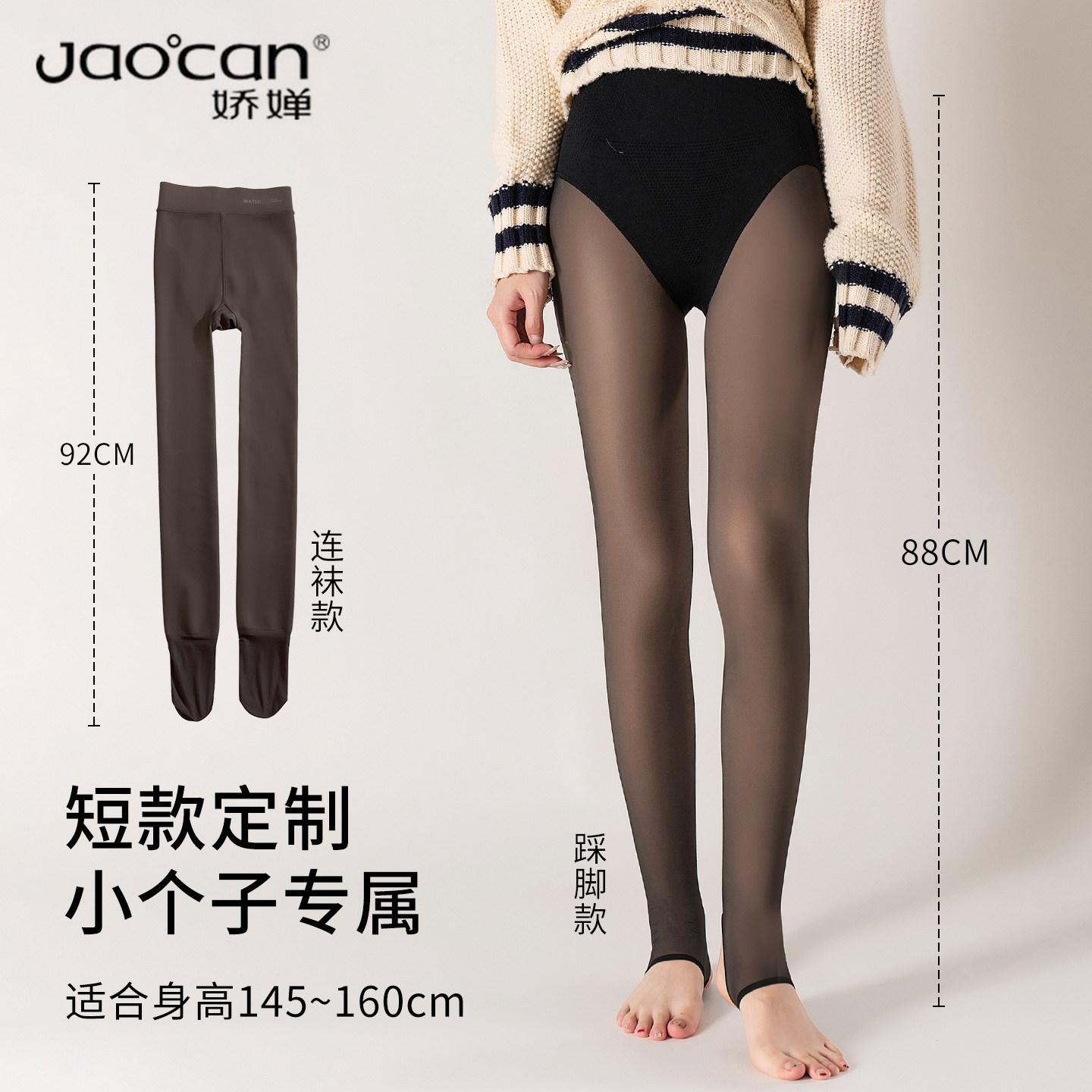 娇婵小个子黑丝袜光腿神器女秋冬加绒黑透肤假透肉黑色打底连裤 袜