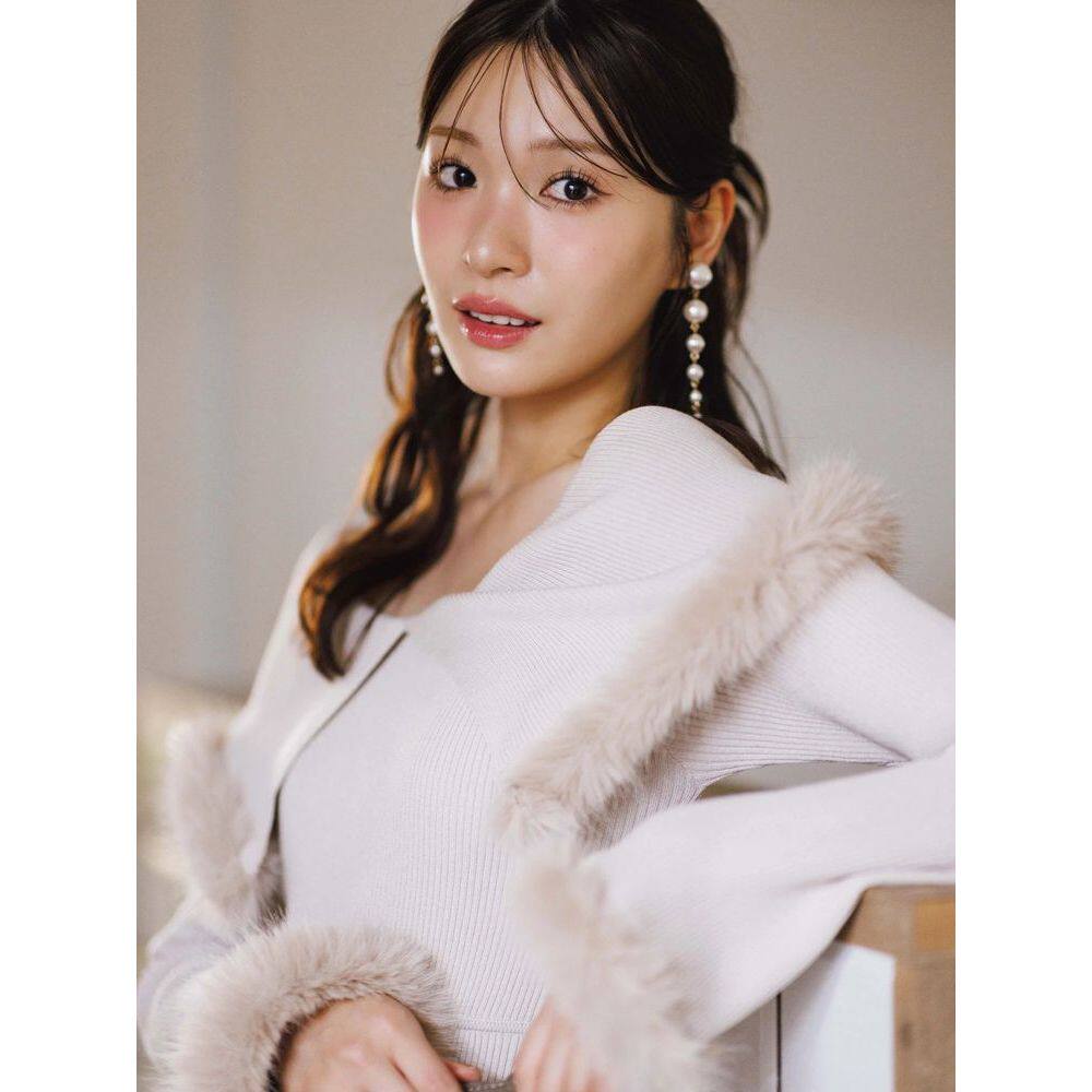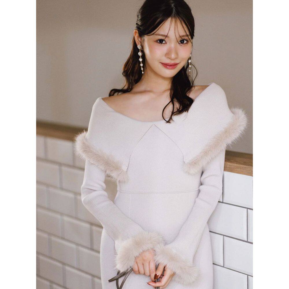 1h可退 宽松显瘦设 日本直邮MERCURYDUO女士仿毛绒镶边针织连衣裙