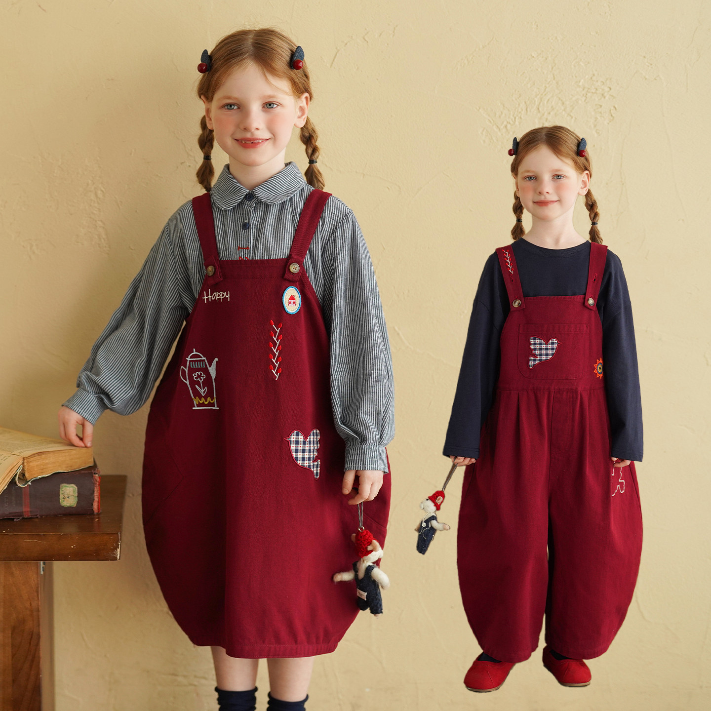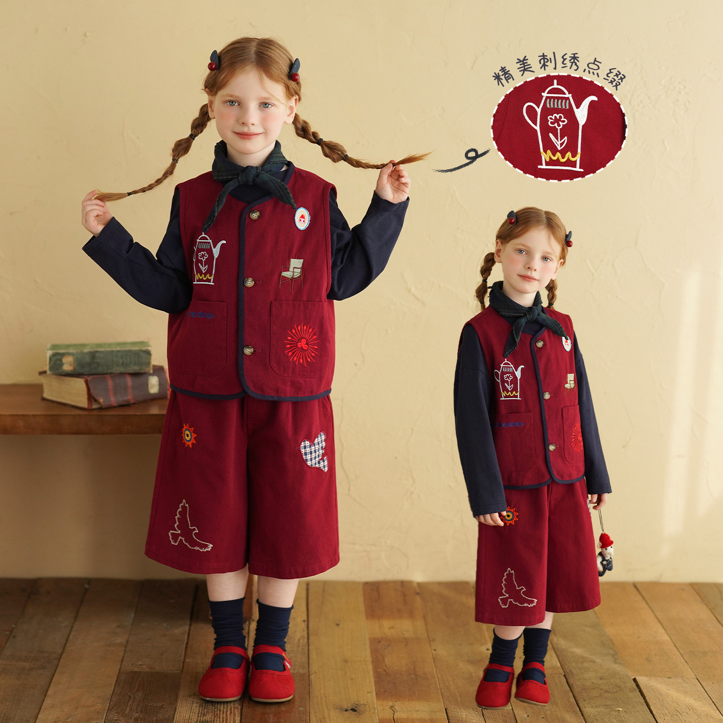 儿童外套马甲背带裤 新款 洋气裙子 2026春季 砚台家女童纯棉红色套装