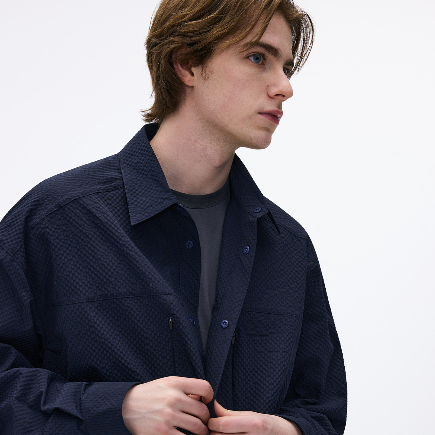 新款 BENPANDA 男休闲翻领通勤外套上衣2026春季 衬衫 泡泡纱长袖