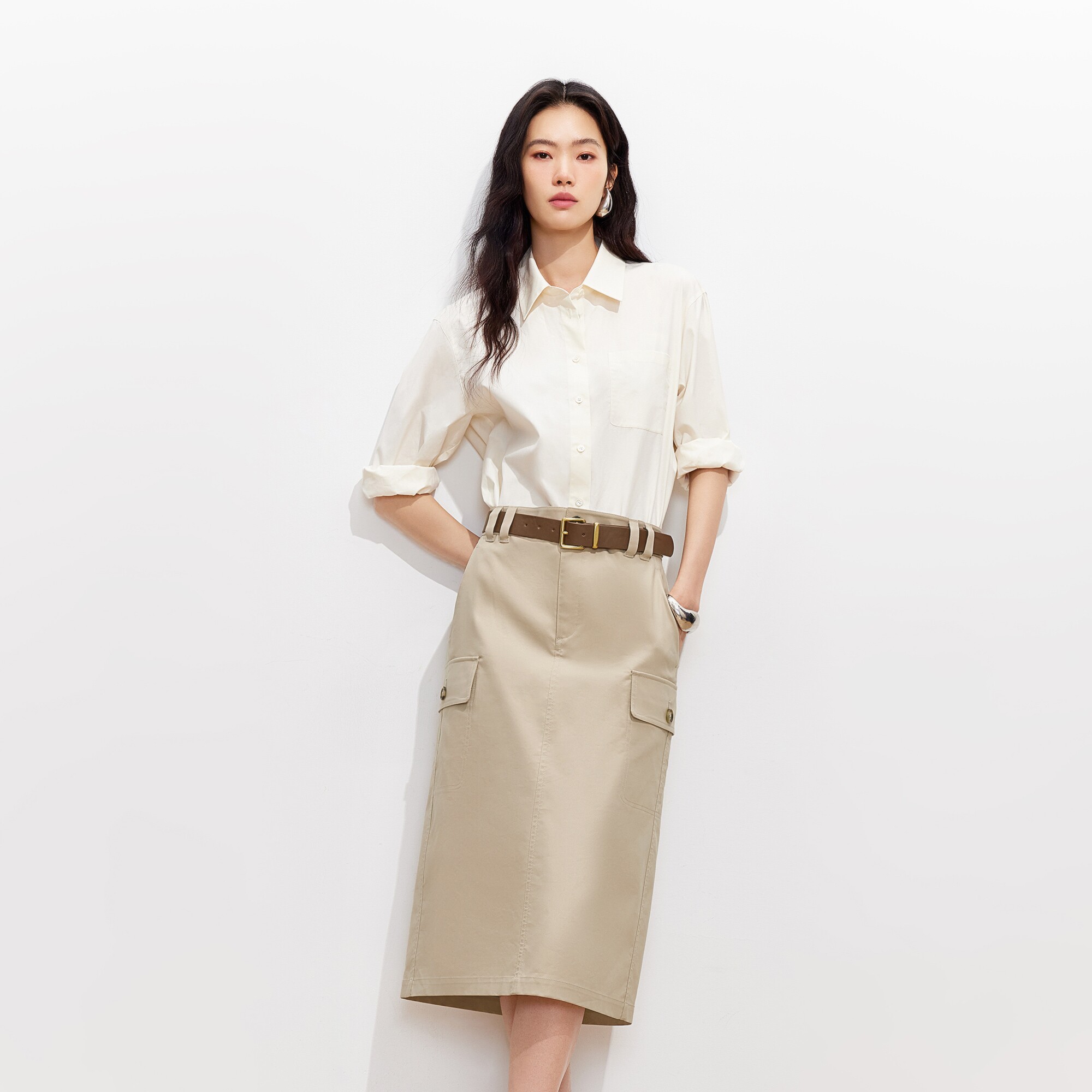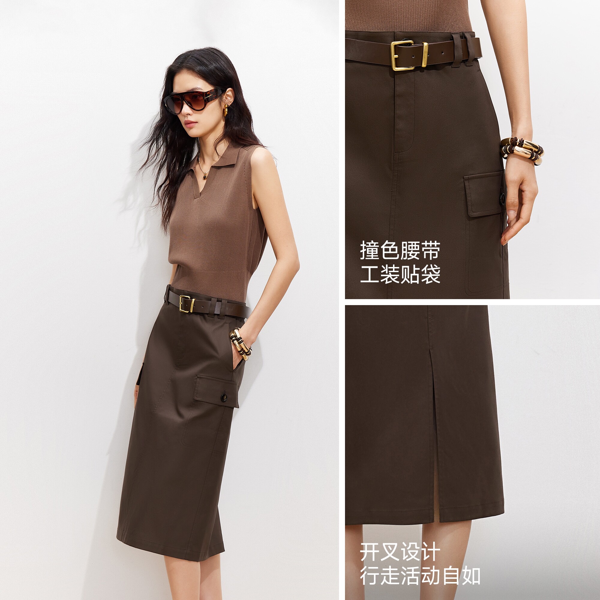 工装 Vero 可拆腰带直筒中长款 新款 裙326116015 Moda半身裙2026春季