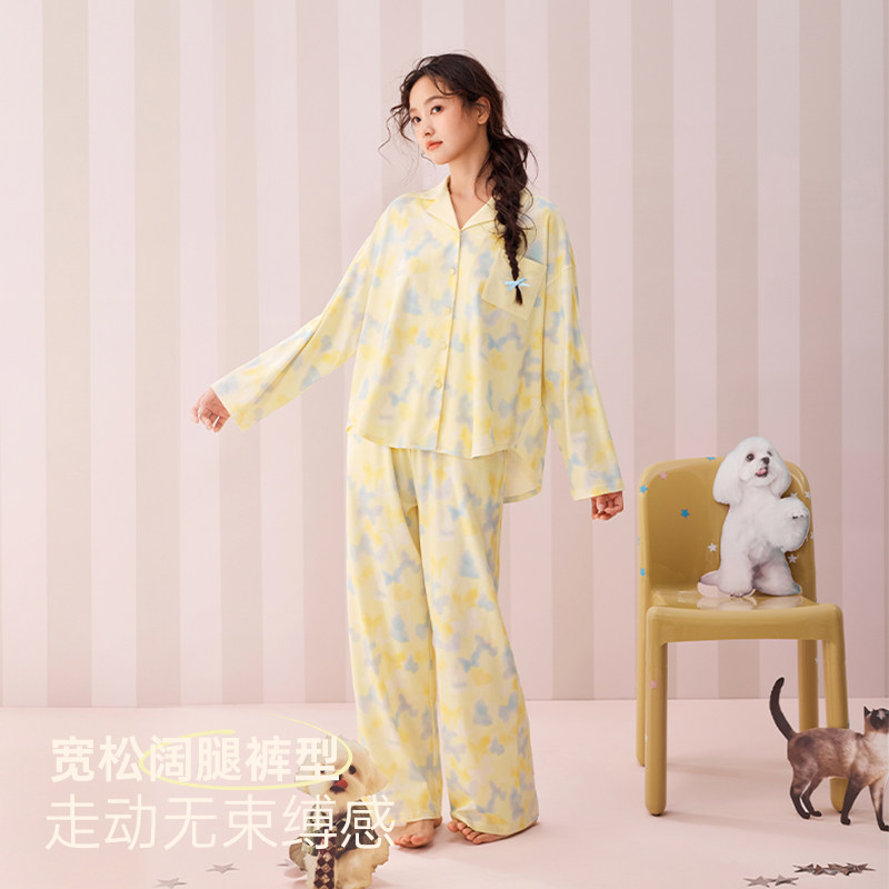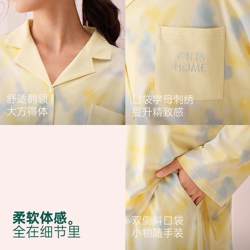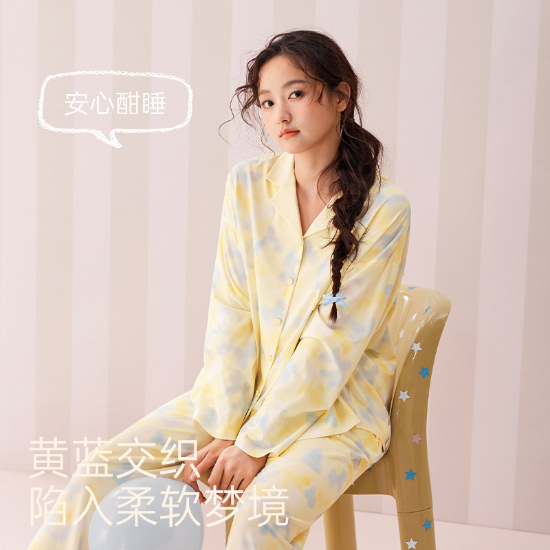 巨柔软 春款 纯棉睡衣女春秋季 衬衫 甜美家居服 针织棉长袖 安之伴