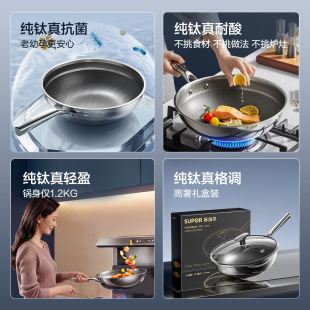 苏泊尔纯钛炒锅无涂层不粘锅家用钛锅电磁炉燃气专用钛炒锅炒菜锅