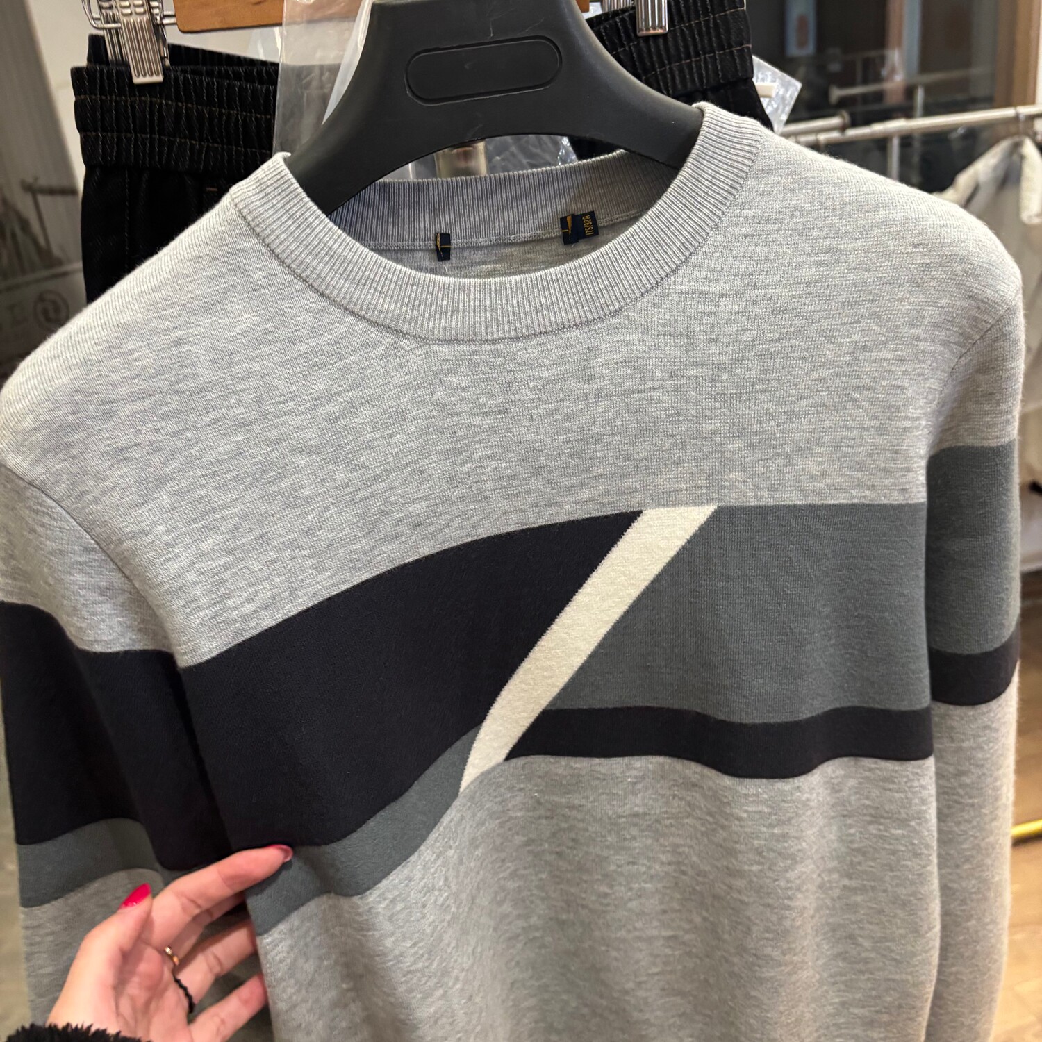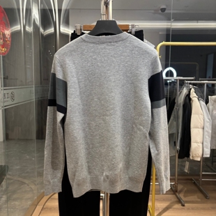 春秋薄款 撞色提花 男士 时尚 毛衣 简约休闲百搭圆领针织衫 H系