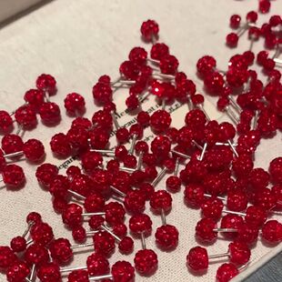 钛钢红色超闪本命年双面耳骨钻球高级耳钉气质新年耳环防过敏耳饰