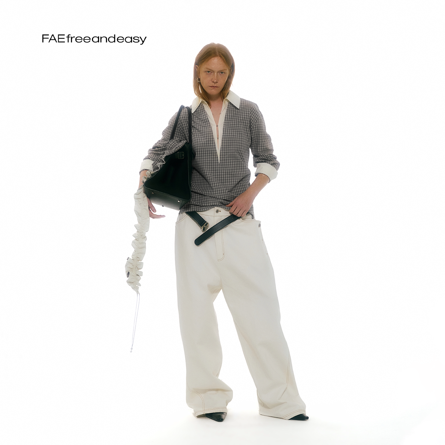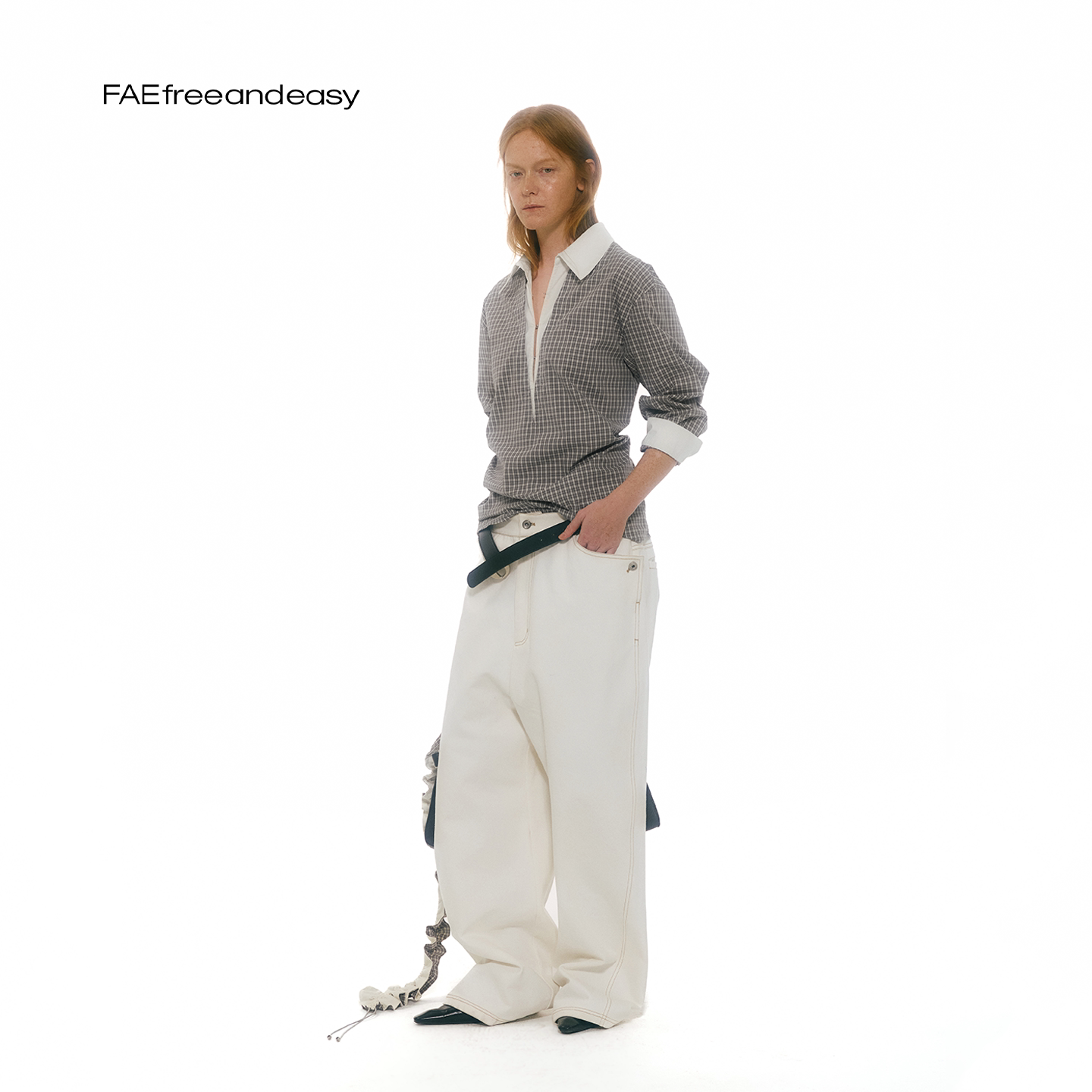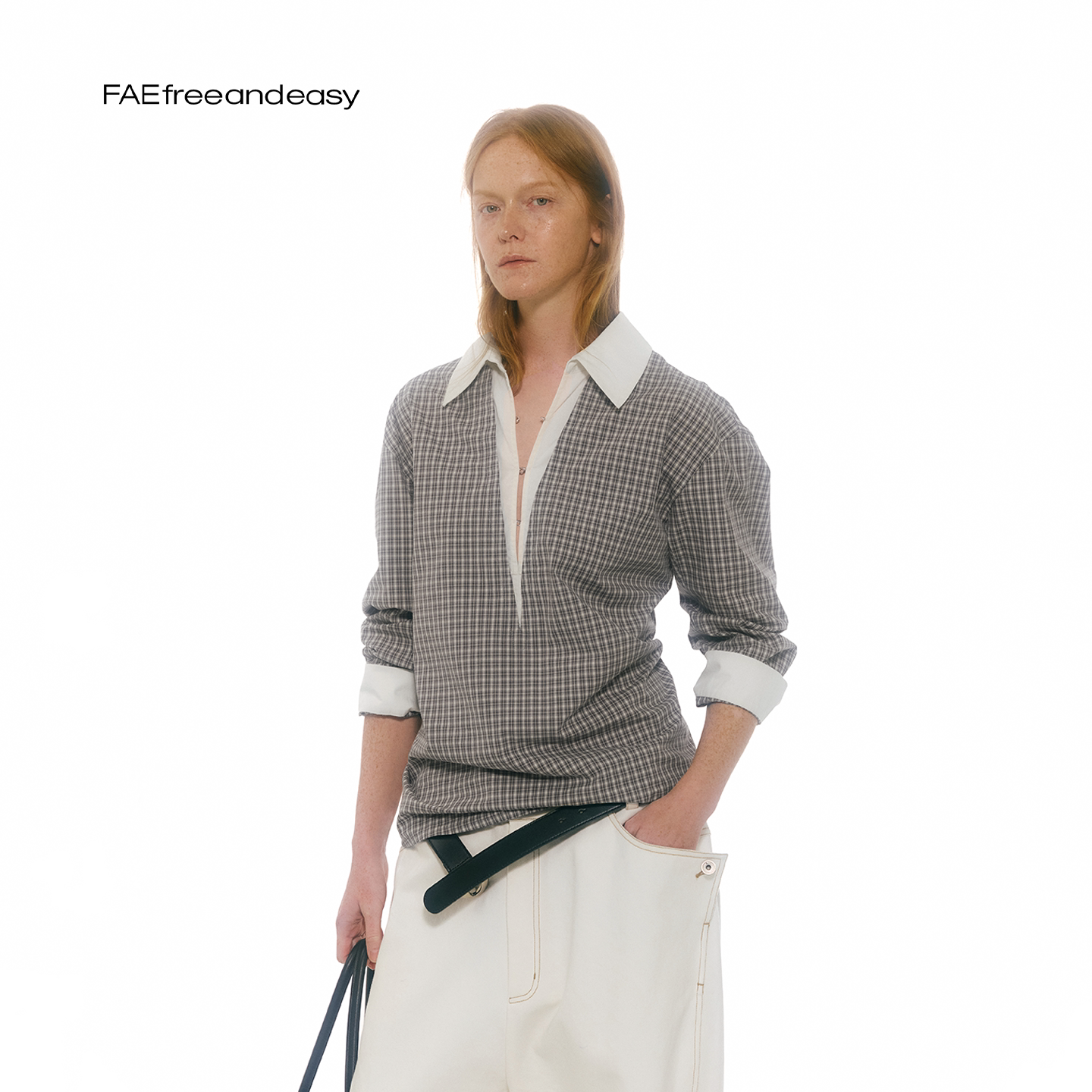 衬衫 气质格纹西装 缝隙生声 女假两件V领格子上衣春季 FAE