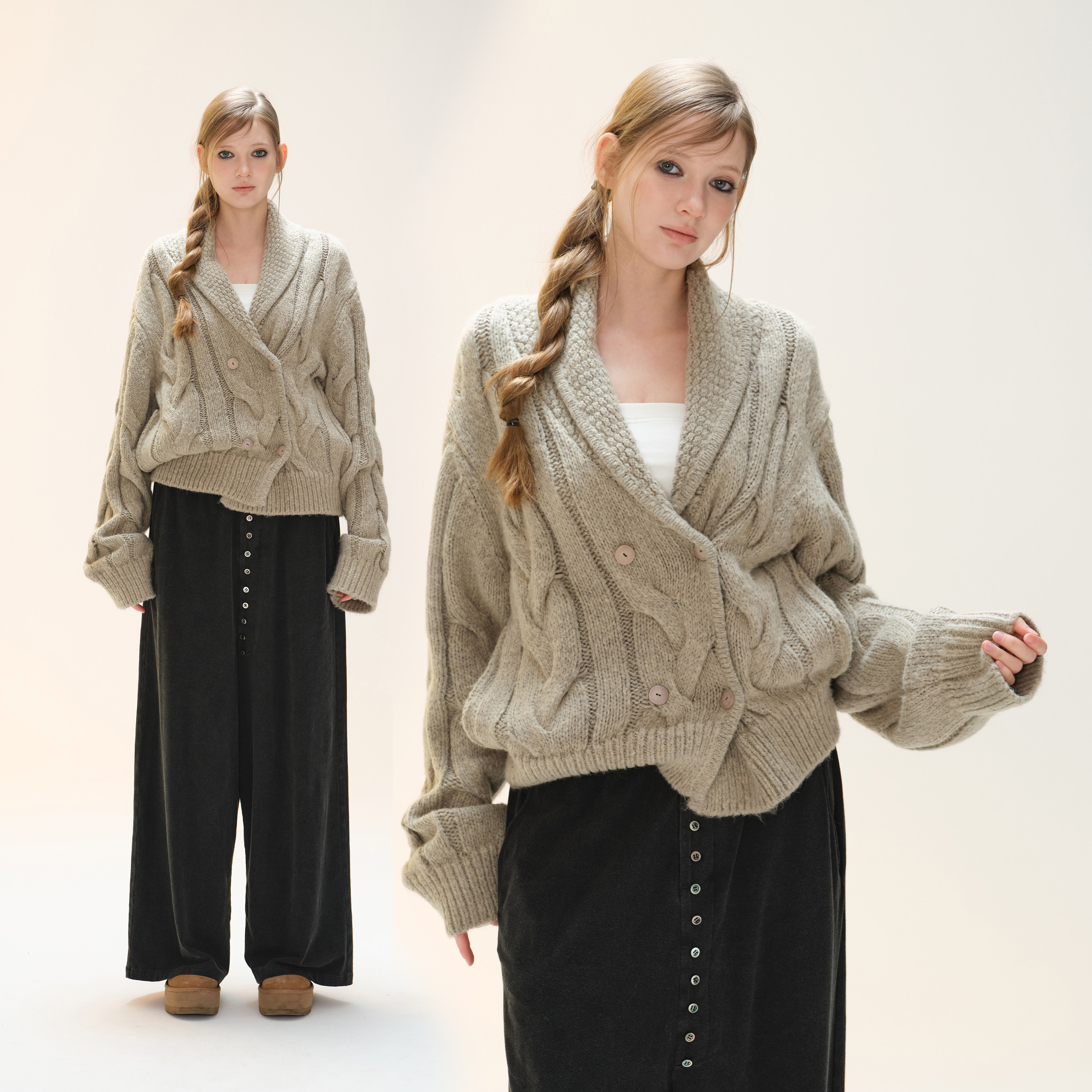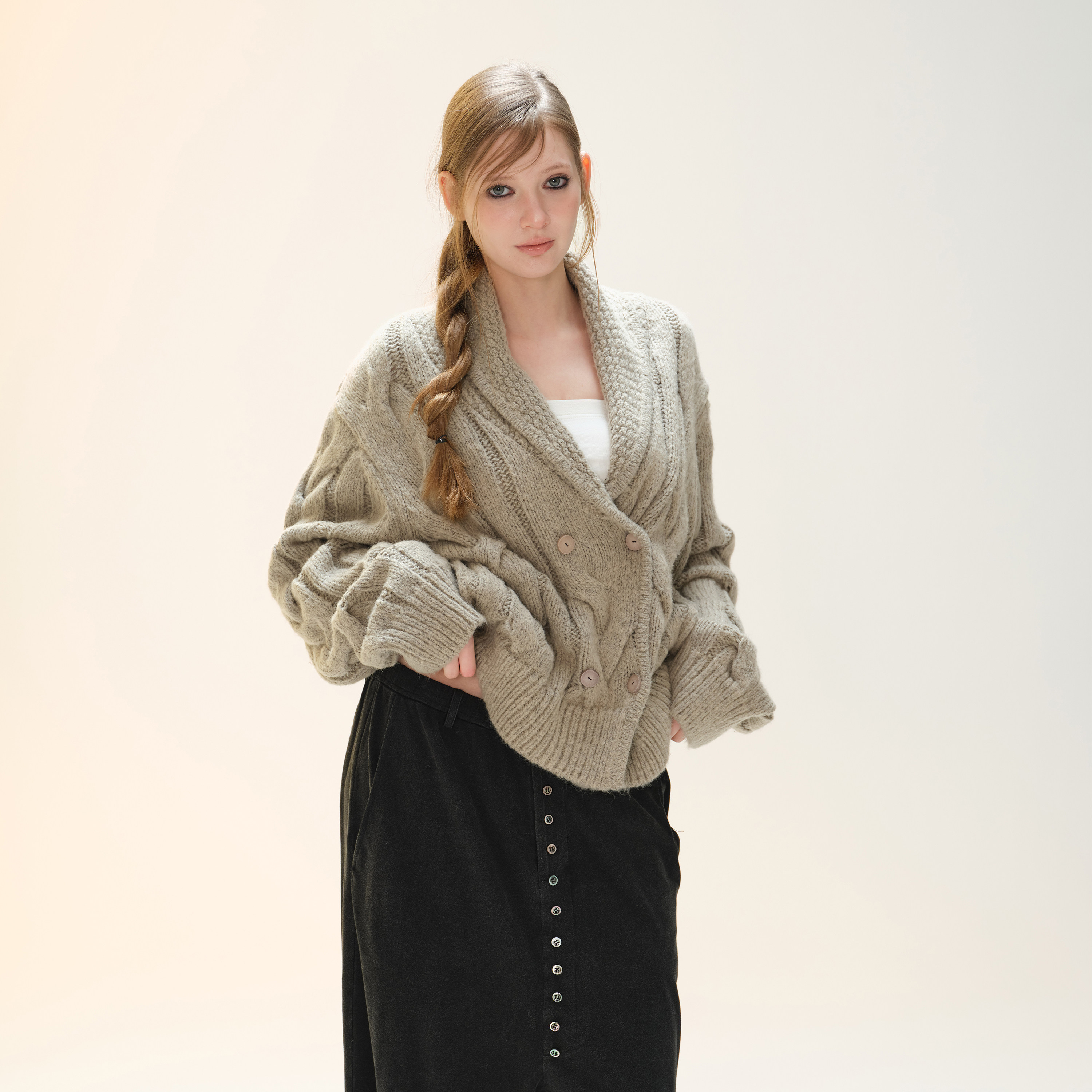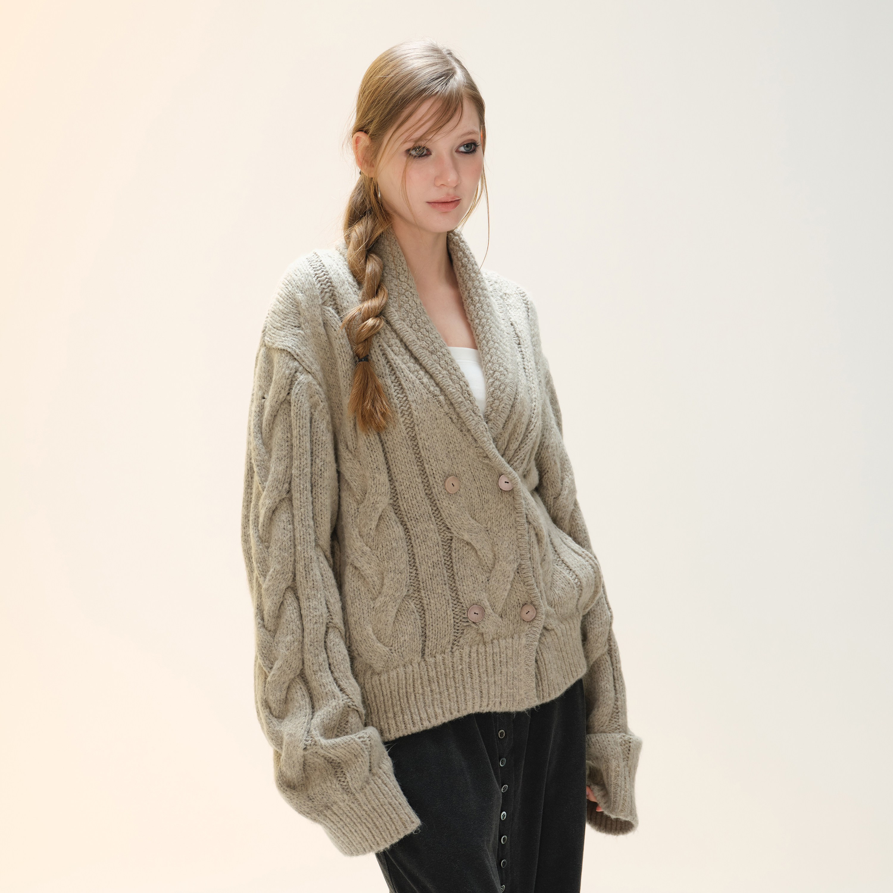 翻领复古麻花羊毛骑士风加厚开衫 法式 毛衣女 慵懒软糯 COZYDOLL
