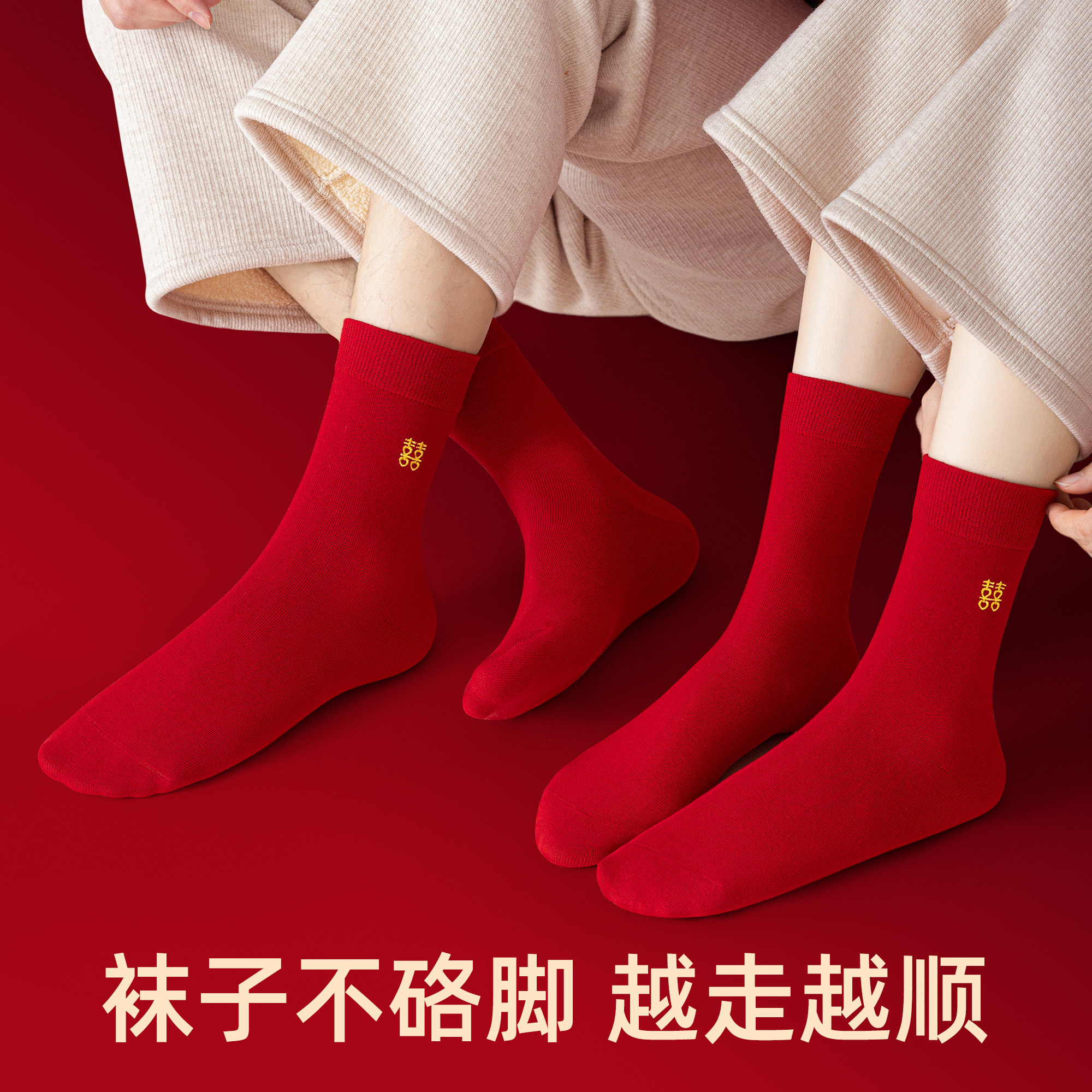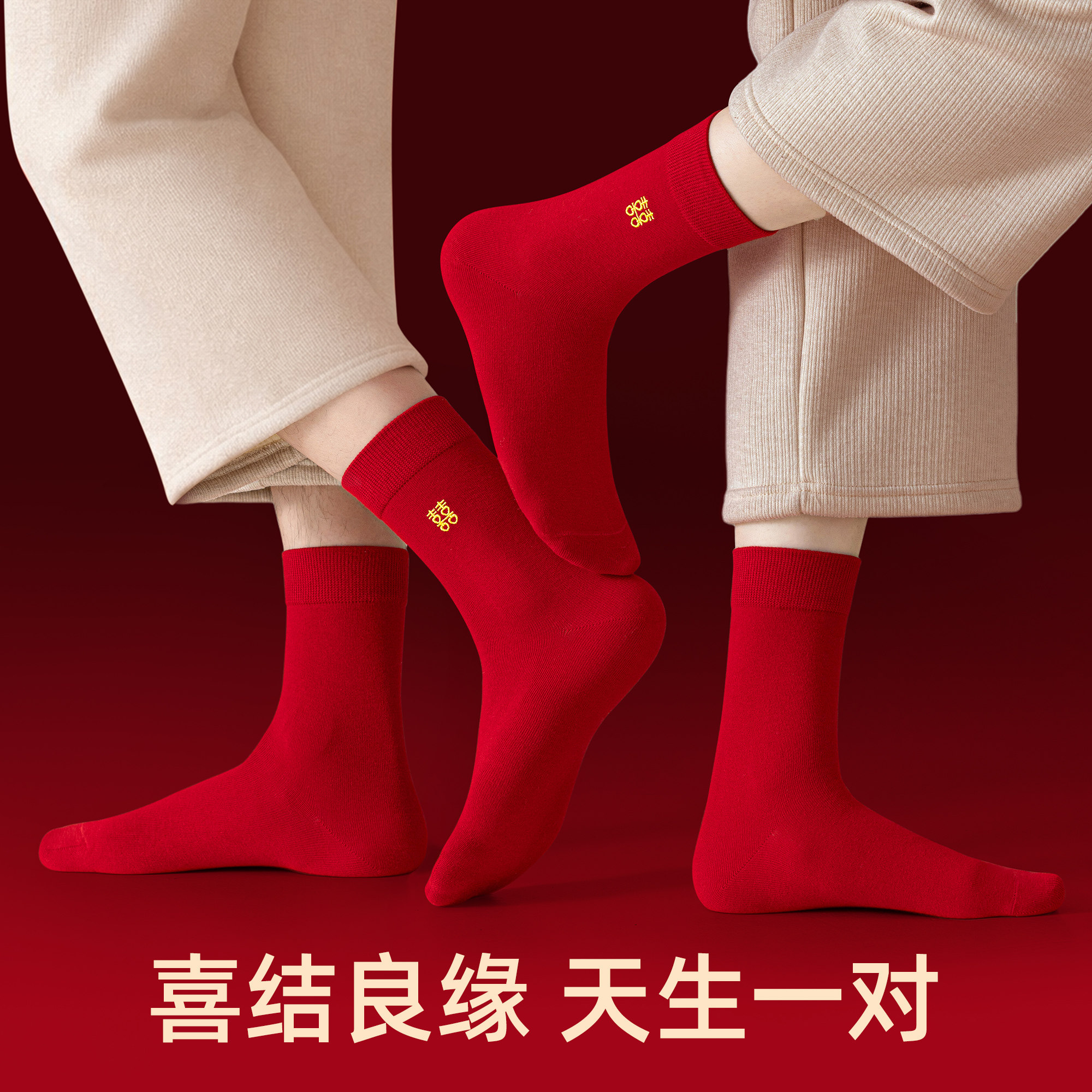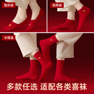 红袜子结婚情侣一对纯棉中筒袜本命年男女新年礼盒隐形船袜短袜