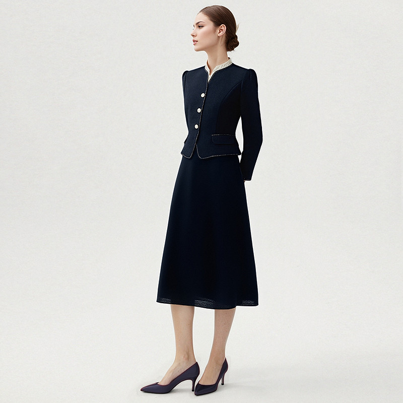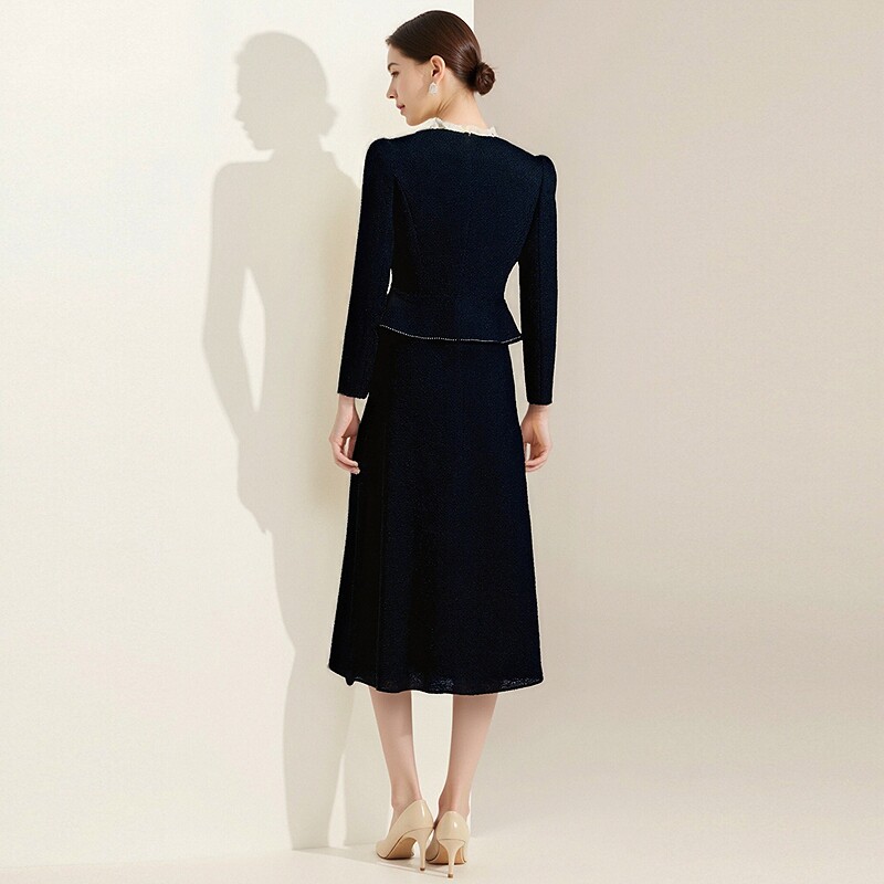 轻熟优雅风藏蓝色连衣裙女职业装 通勤显瘦收腰高级感气质裙新款