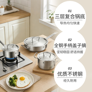 不锈钢炒锅汤锅奶锅铸铁锅厨房锅组套装 双立人锅具套装 自营