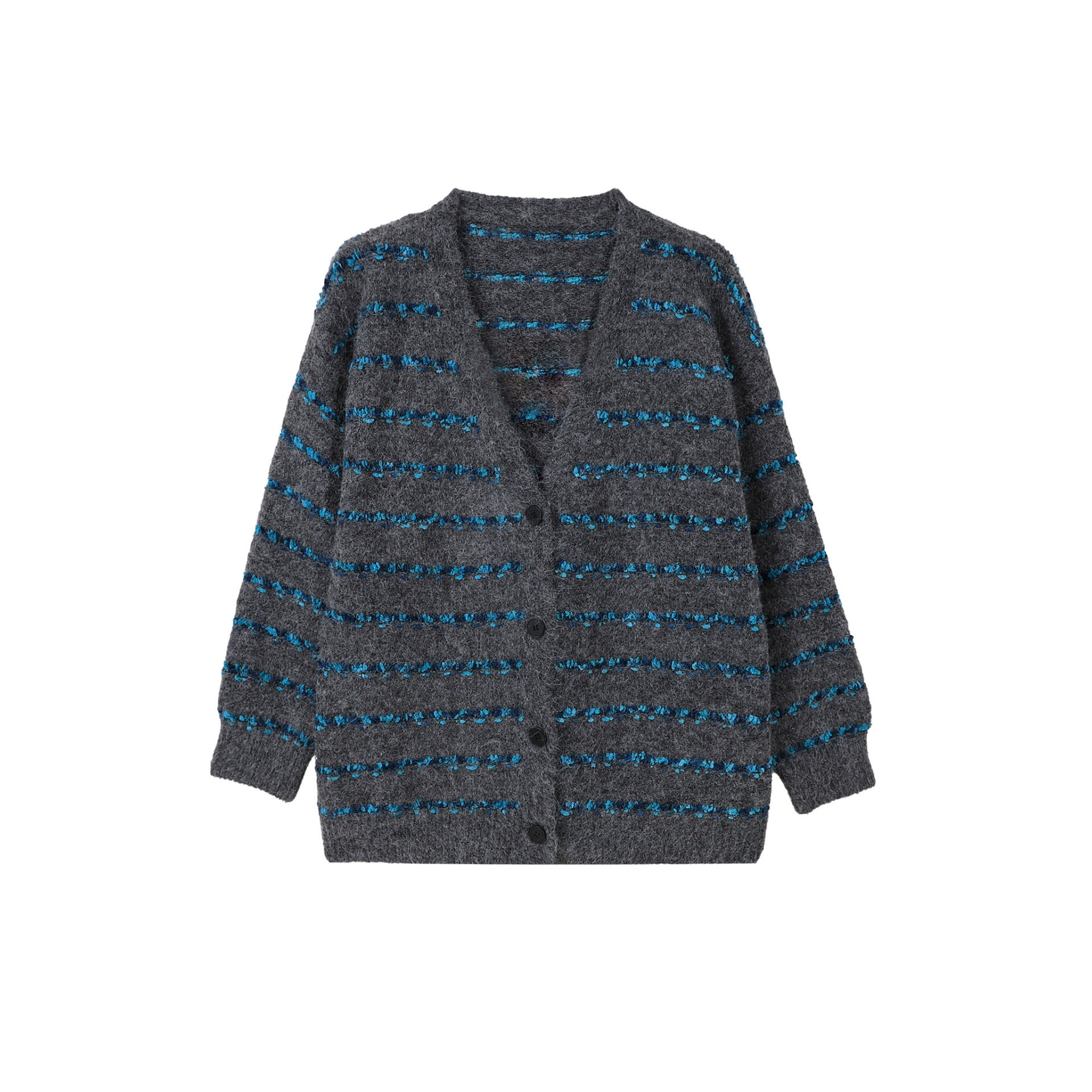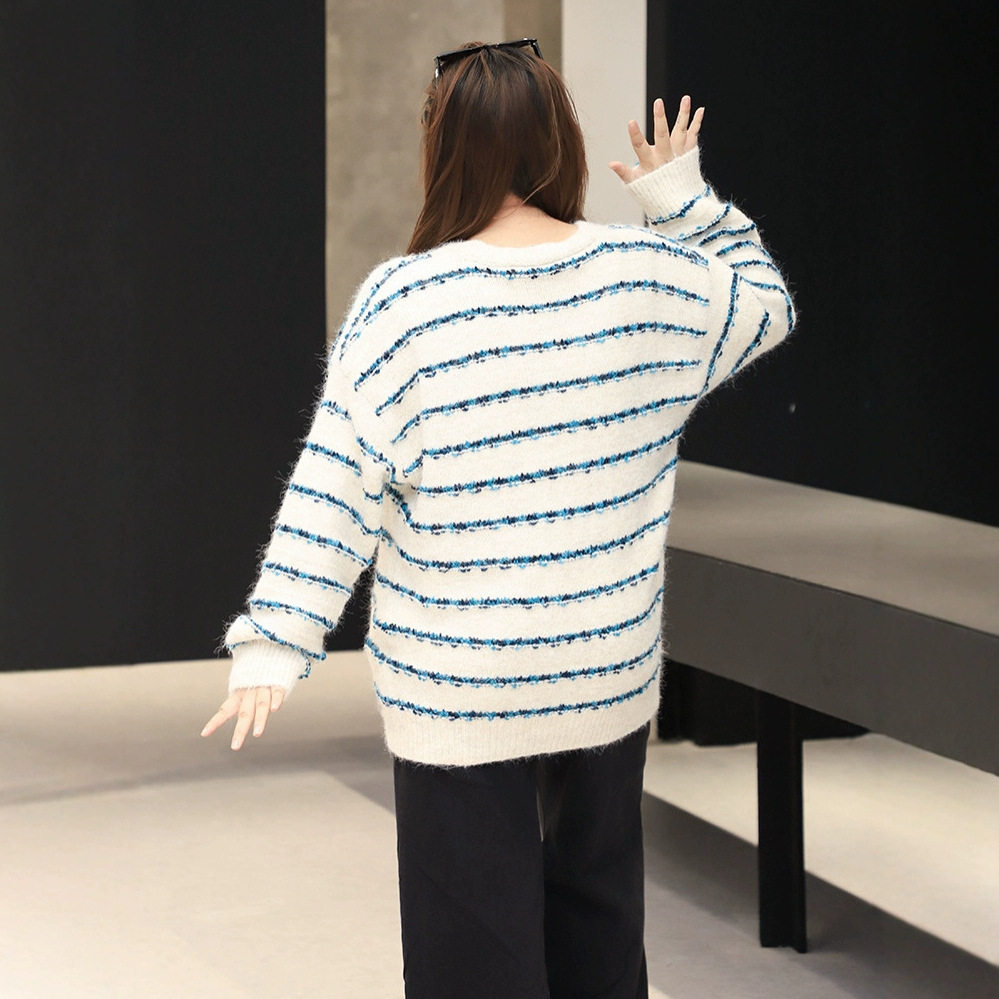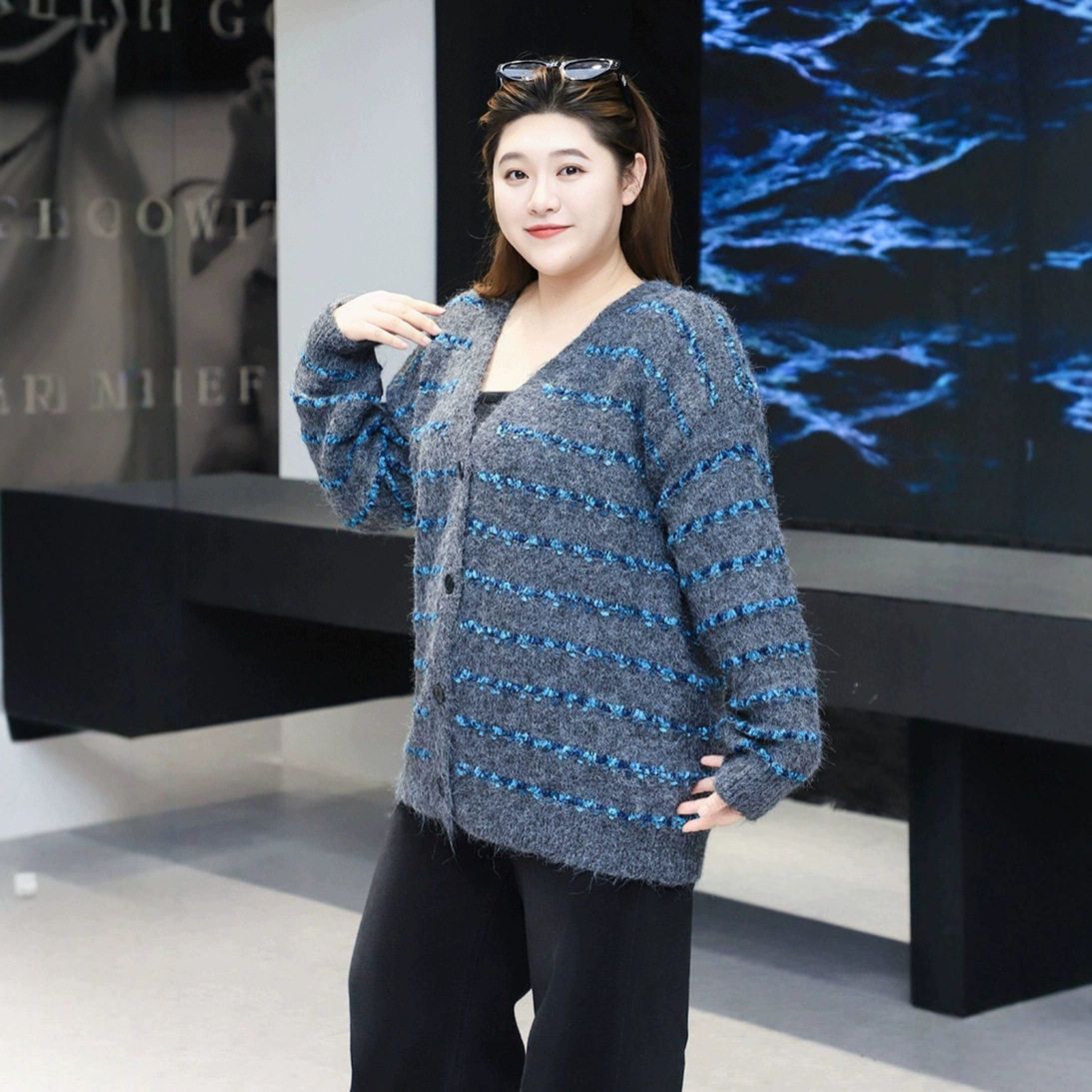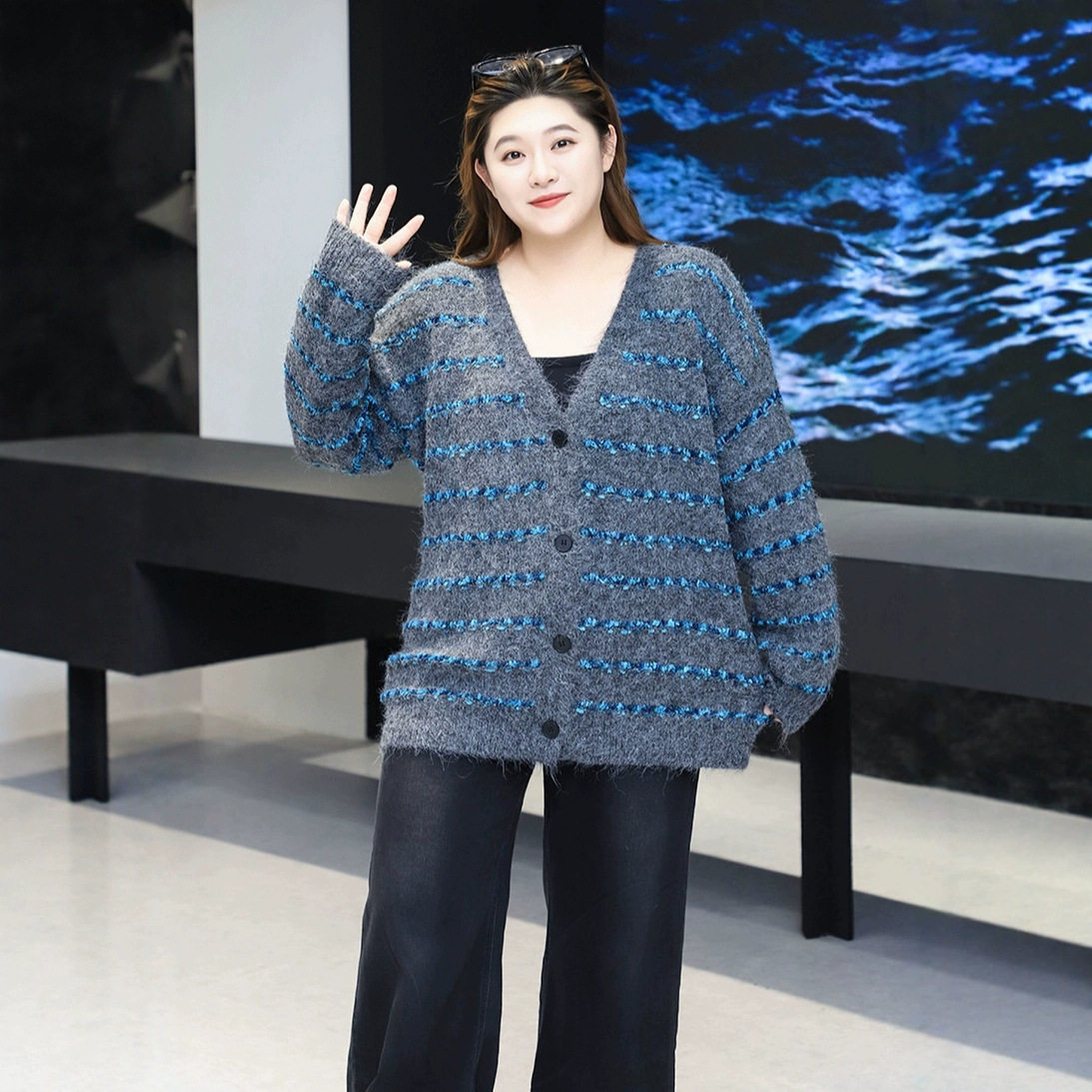 设计感宽松撞色条纹显瘦毛衣外套260 女装 120 280斤胖人可穿特大码