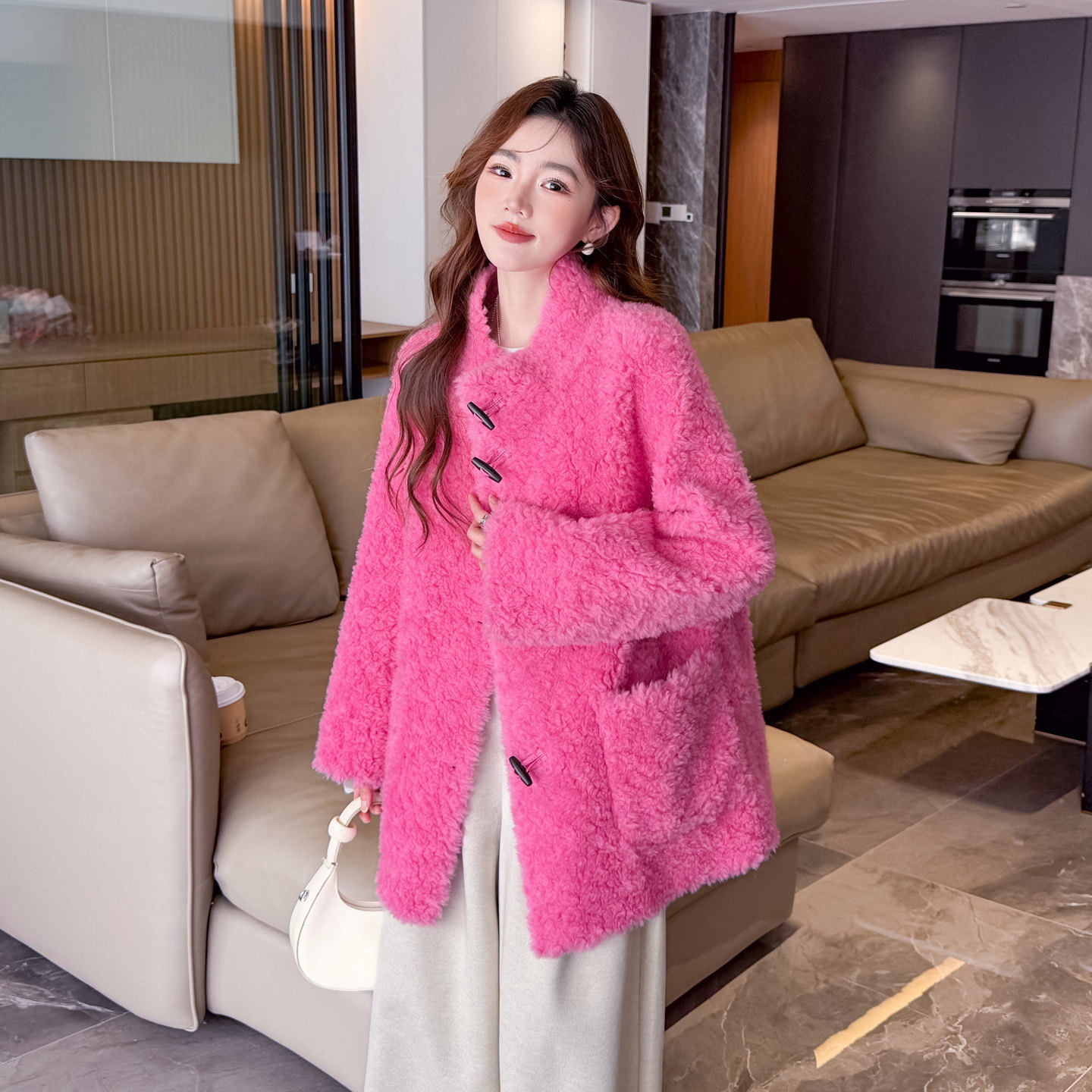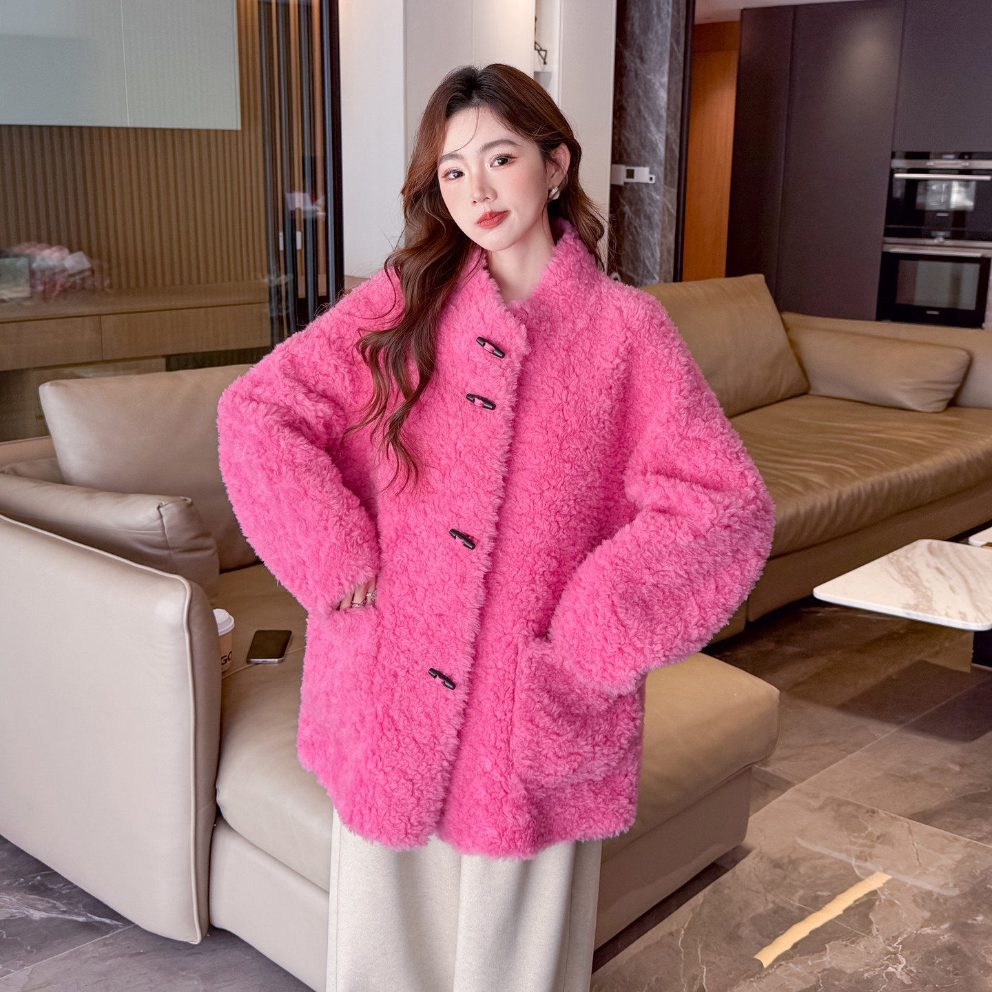 复合皮毛一体外套宽松颗粒羊剪绒大衣女中长款 2025海宁羊羔毛皮草