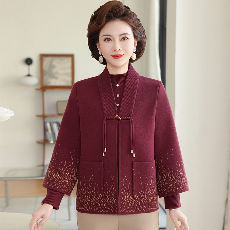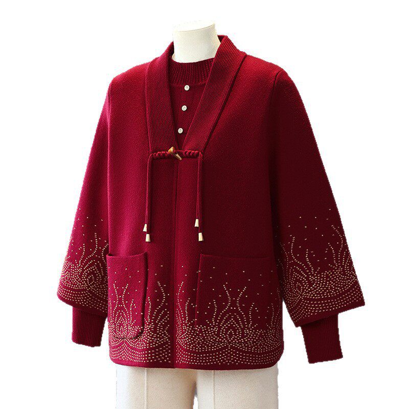 女装 中老年大码 上衣服奶奶毛衣外套秋冬老太太 套装 恒源祥妈妈秋装