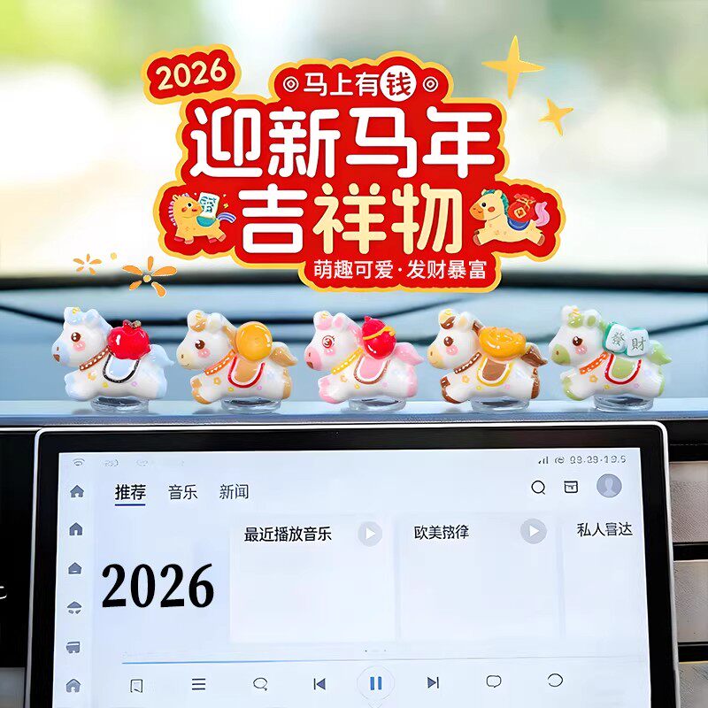 2026新款 饰品摆件 车载马上有钱小摆件马上暴富小马汽车内中控台装