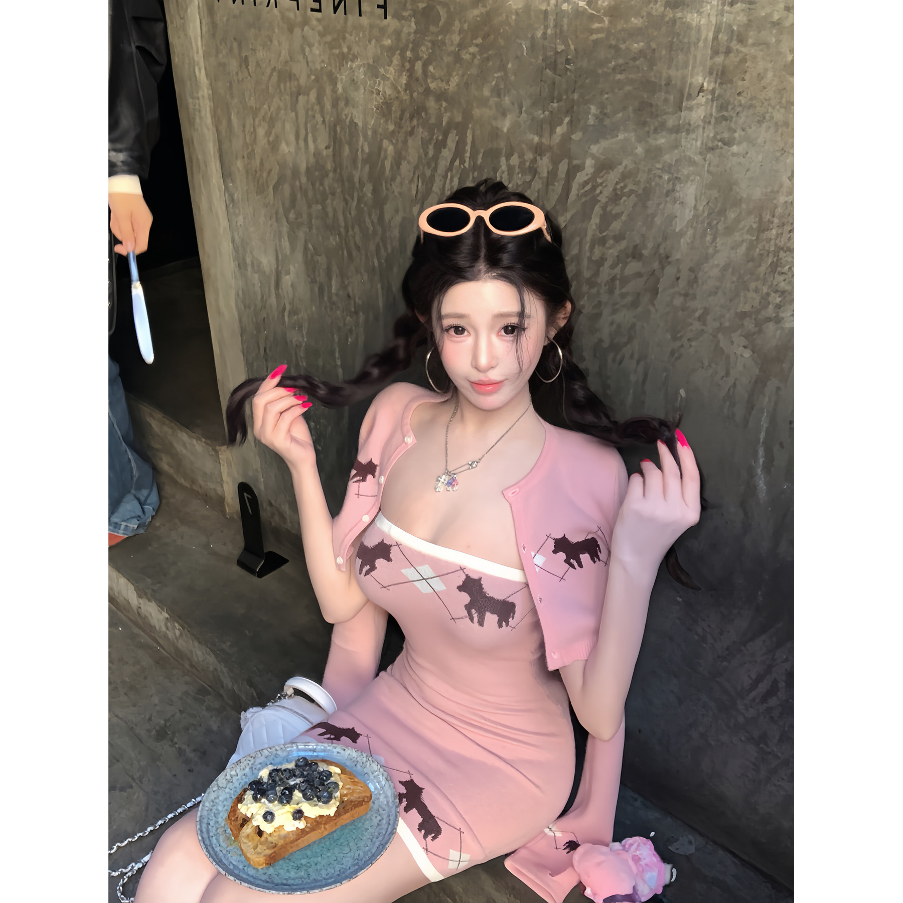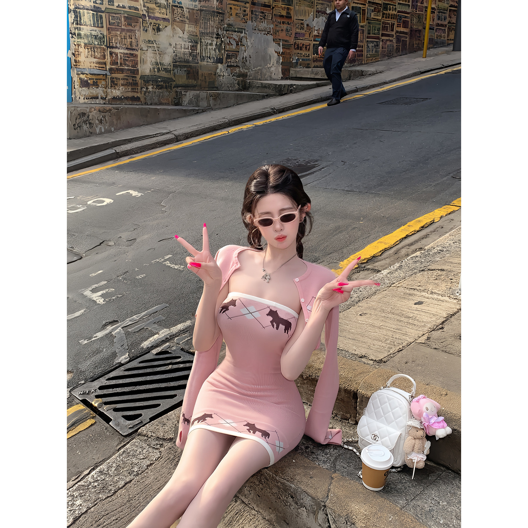 纯欲包臀裙裙子两件套 2026早春新款 项天鹅er 针织抹胸连衣裙开衫