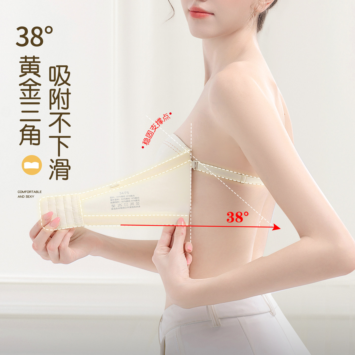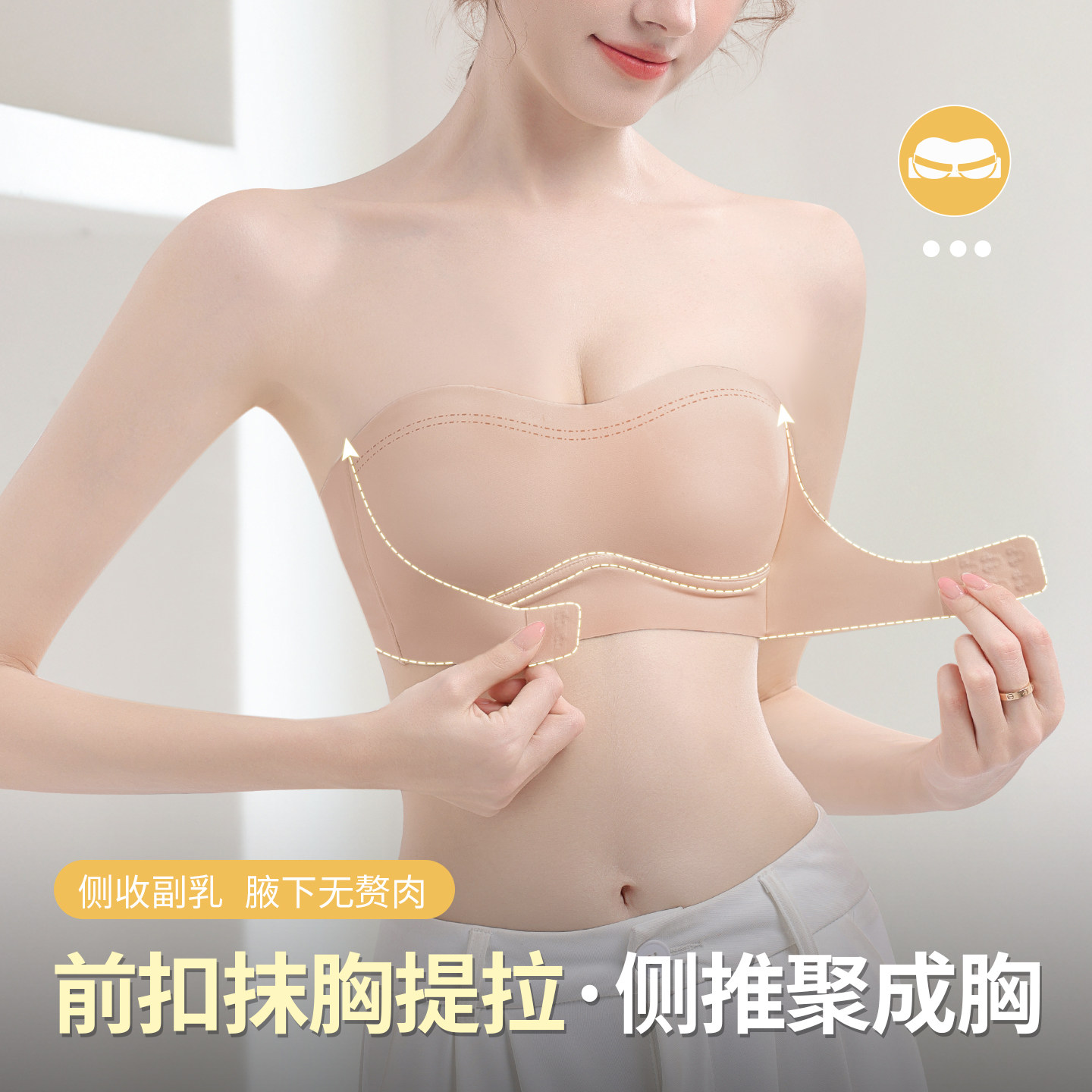 前扣抹胸无肩带内衣女防滑聚拢收副乳防下垂隐形裹胸防走光文胸罩