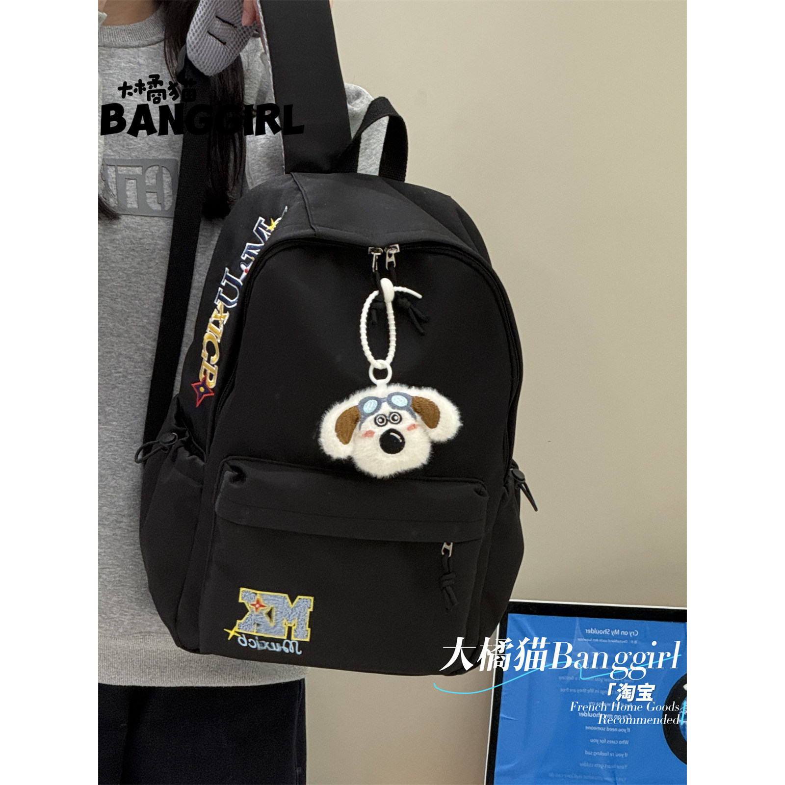 大橘猫字母潮ins高中大学生背包简约百搭大容量休闲百搭双肩书包
