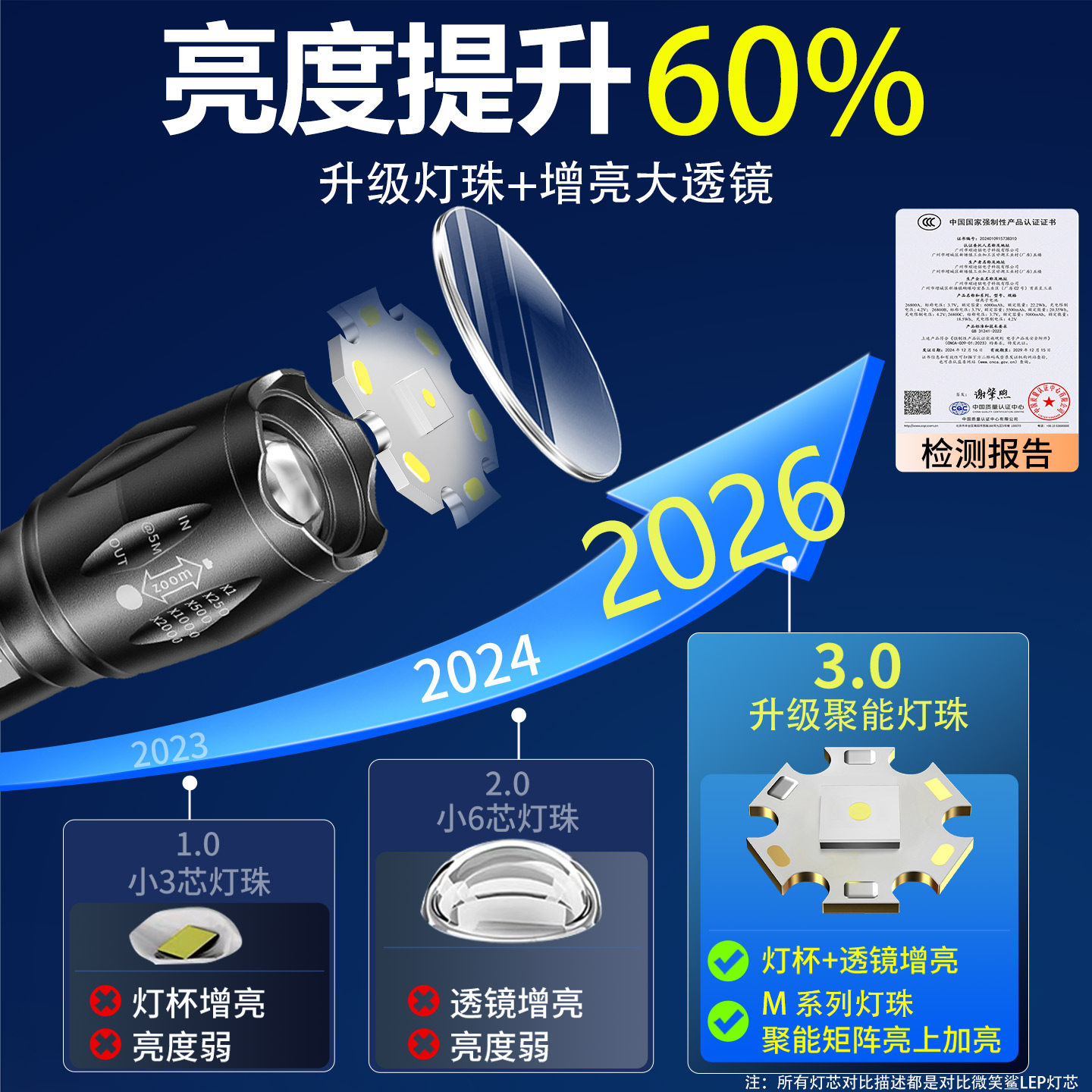 手电筒强光充电式 便携耐用多功能远射 超亮户外激光家用2026新款