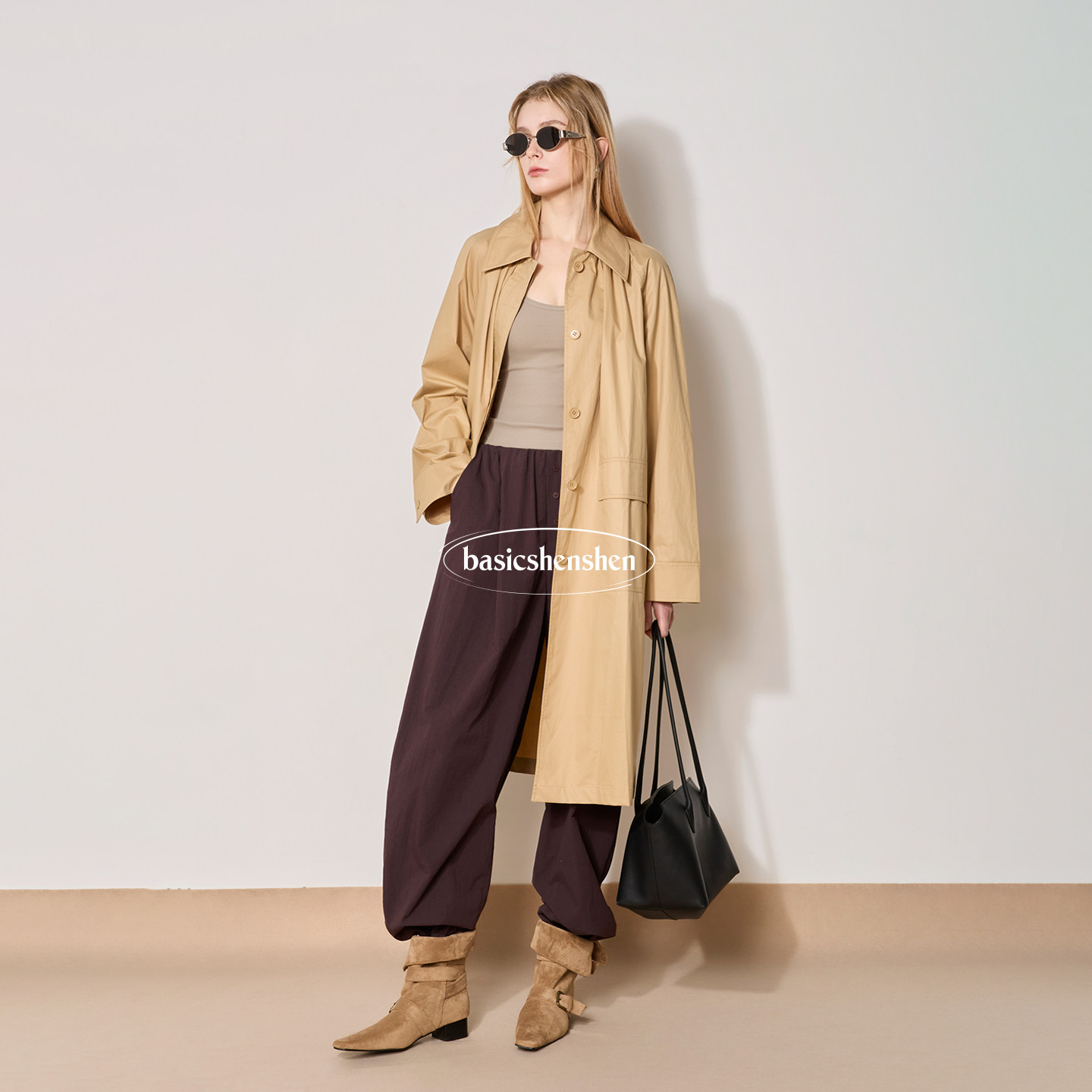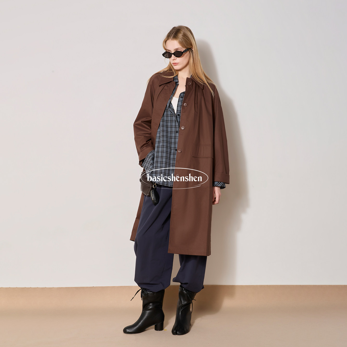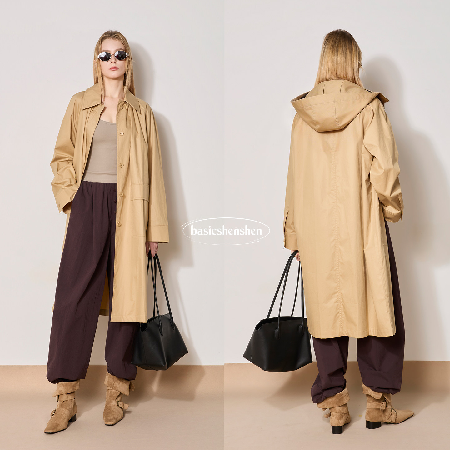 连帽风衣女中长款 ROW风插肩袖 廓形休闲外套 新款 basicshenshen春季